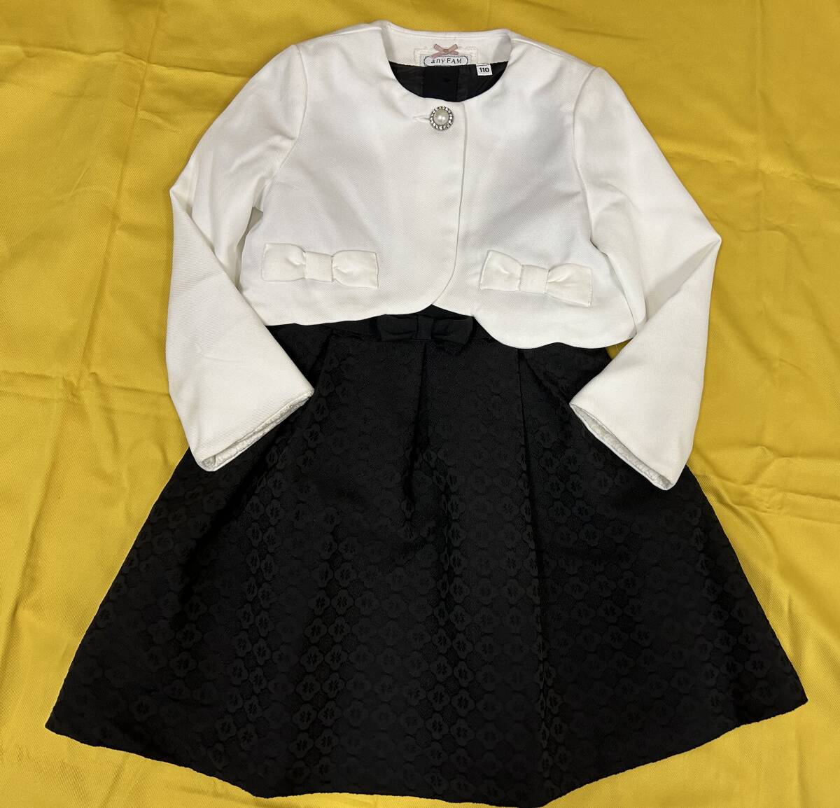 ♪女の子*フォーマル 上品デザイン ワンピースアンサンブル*110*【anyFAM】白×黒 結婚式 発表会