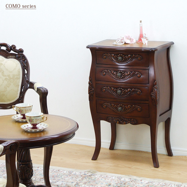 商品説明 | コモ チェスト4D ブラウン(BR) 落札後、最初の連絡で配達伝票に記載する電話番号をお尋ねします 【コモ シリーズ】高級感があり、天板がレザー調のチェスト。手彫り仕上げなど、細部まで工夫があります。 ●マホガニー材を使用した、高級感あふれるアンティーク仕上げ。 ●天板はレザー調の特殊な仕上げになっており、高級感があります。 ●手彫り仕上げ、引出内部の底はフェルト貼りなど、細部にまで工夫があります。 サイズ・容量 【商品サイズ】約 横55×奥行35×高さ86cm 【引出内寸】4杯:約 横39×奥行22.5×高さ7cm 【重 量】約 12kg 【梱包サイズ】約 61×41×92 cm 【梱包重量】約 16kg 規格 【材 質】 前板・脚:天然木 天板:中質繊維板 側板:天然木化粧合板、ラッカー塗装 【仕 様】完成品 【生産国】インドネシア ブラウン(BR)専用ページです、ホワイト(WH)も有りますが別ベージとなってます。 (サイズ及び商品説明用に取扱いカラー全色を載せていますが、専用ページカラー以外の画像は参考として下さい ) カタログ価格52000円 |