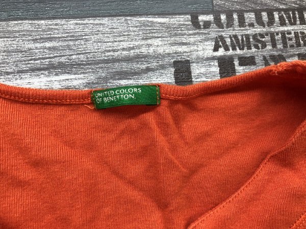 UNITED COLORS OF BENETTON ベネトン レディース イタリア製 綿麻 エスニック ロンT 長袖Tシャツ オレンジ です。