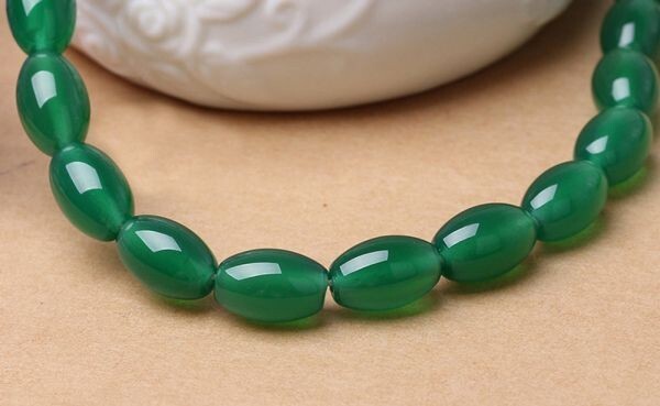 [EasternStar] 海外発送 ライスカット グリーン アゲート 6×9mm 天然石 ビーズ 緑瑪瑙 メノウ 1連売り 長さ約40cm