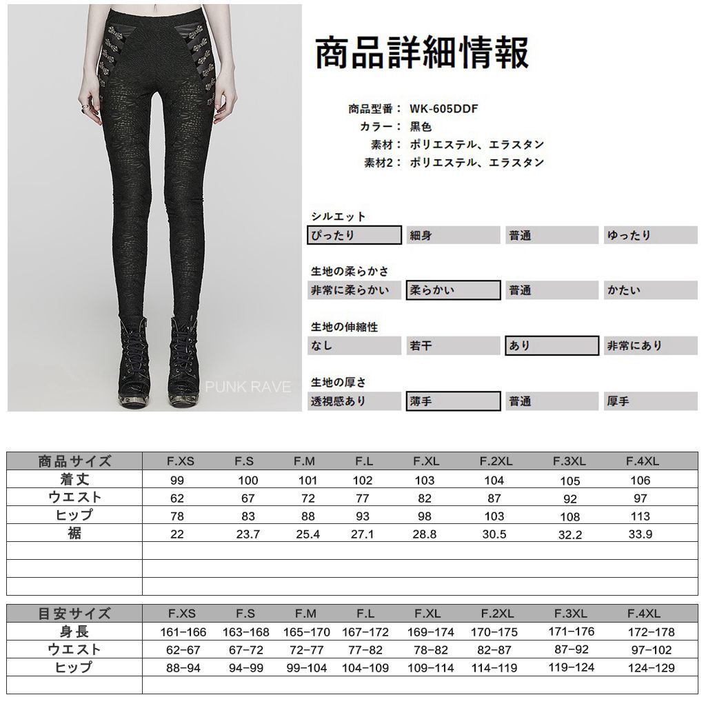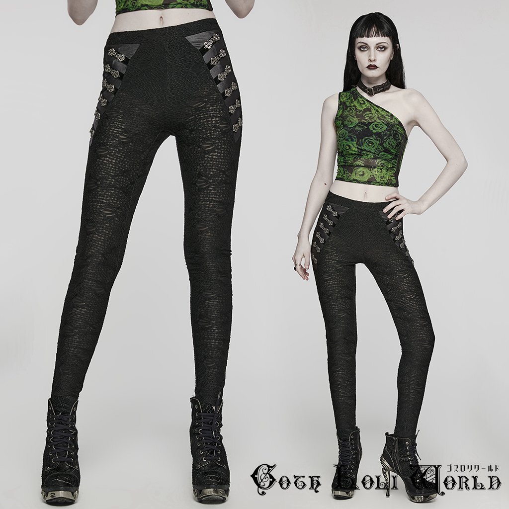WK-605DDF-BK-S シースルージャガードメッシュレース レギンス パンツ ゴスロリワールド ゴシック パンク ロック ビジュアル系 V系
