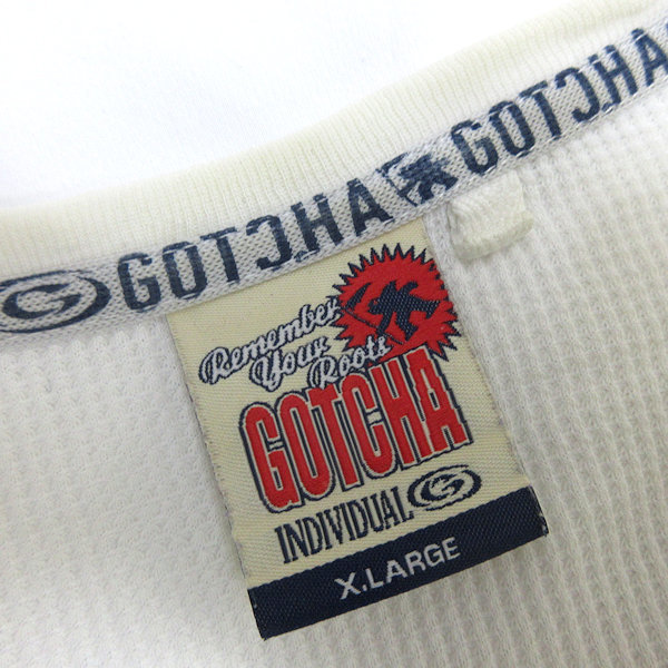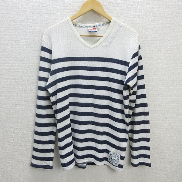 G■ガッチャ/GOTCHA VネックロンT カットソー/ワッフル地【XL】白紺/men's/124【中古】■