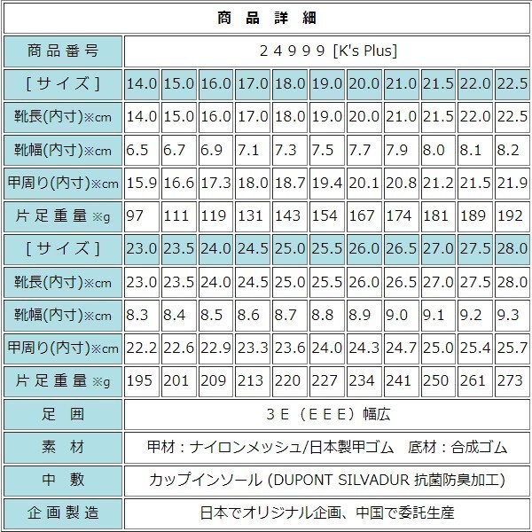 ゴム底は防滑性、屈曲性、耐摩耗性に優れており、ナイロンメッシュ甲材は通気性が良く、丸洗いができて清潔を保てるのもうれしいポイントです。
