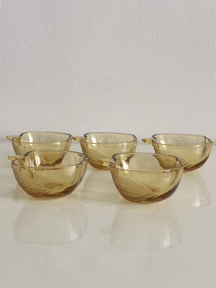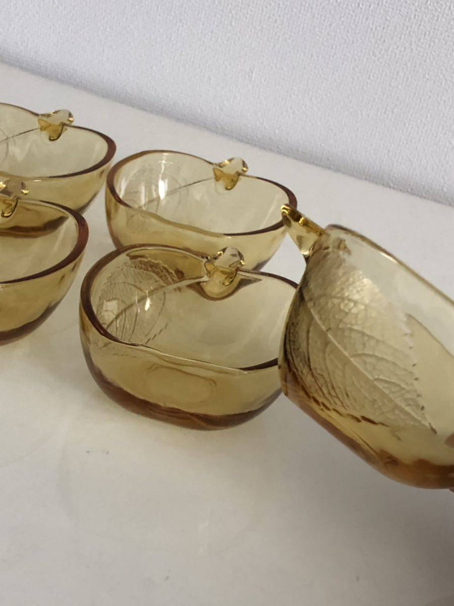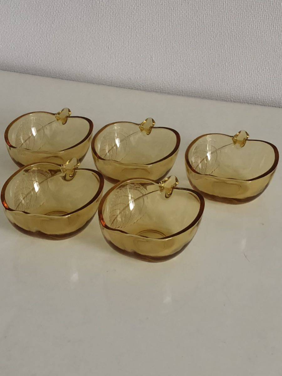 林檎の形の小皿5個セット★レトロガラス、あめ色、透明、りんご、アップル