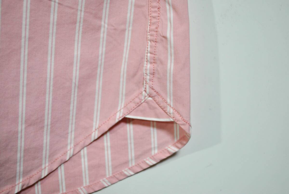 【RUEHL No.925】ルールNo.925の長袖 ストライプシャツです。MADE IN CHINA。標準的な厚さのコットン100%の生地です。カラーはピンク・ホワイトのストライプになります。サイズはメンズMです【※実寸をご参考ください。】大手チェーン古着屋購入の中古品になります。中古品ですので、それなりの着用感ありますが、まずまずの良品です。傷汚れ・色褪せは有りません。古着にご理解のない方、神経質な方の入札はご遠慮ください。慎重に検品しておりますが古着の為、見落としがある場合がございます。何卒ご理解ください。入札、落札後のキャンセルはお断りします。ノークレームノーリターンでお願いします。尚、落札後のご連絡は翌日の昼12時以降になりますのでご了承ください。 (土日祝はお休みさせて頂きます。)