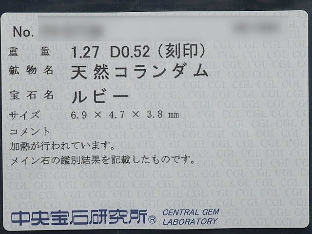 詳細:ノーブランド ルビー/1.27ct ダイヤ/0.52ct Pt900 プラチナ リング 13号 ソーティング付き 仕上済