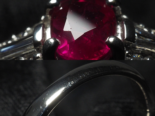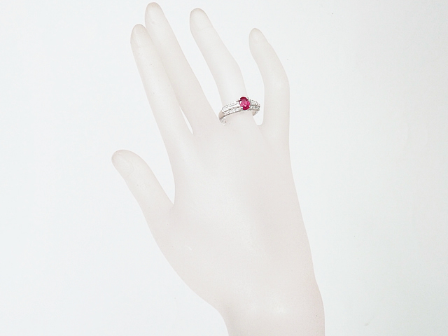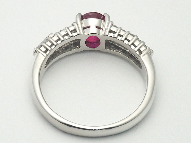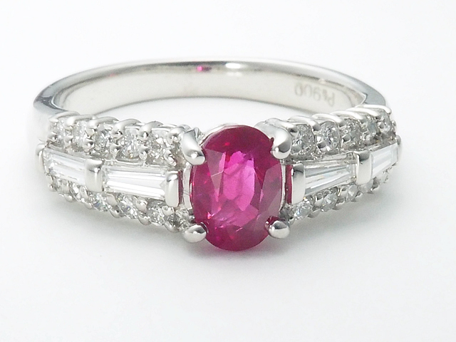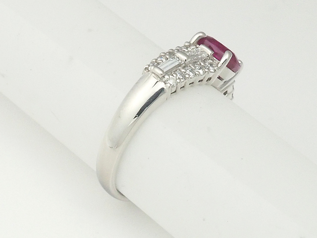 ルビーの赤い輝きとダイヤモンドの白い輝きが美しいプラチナ製のリングです。