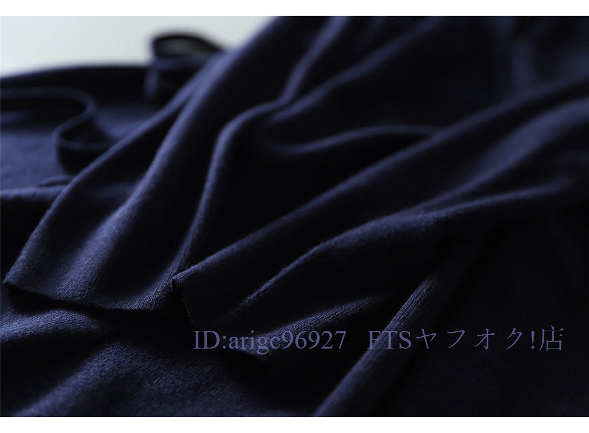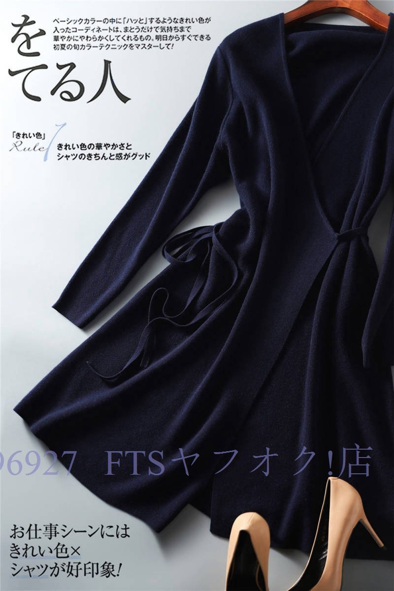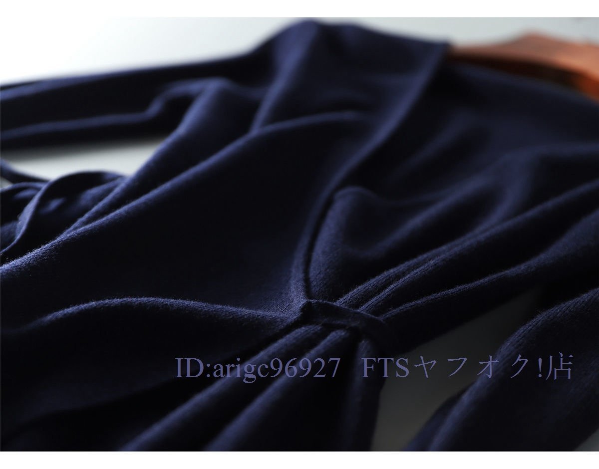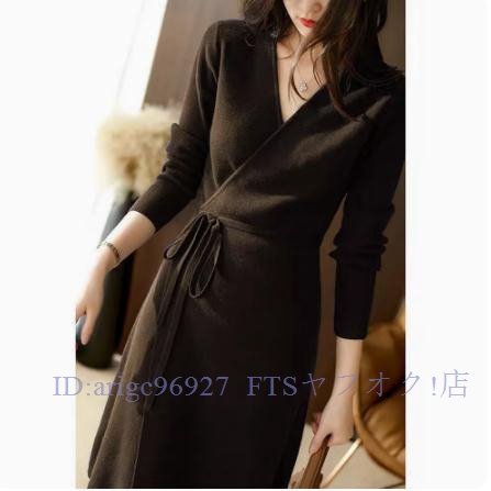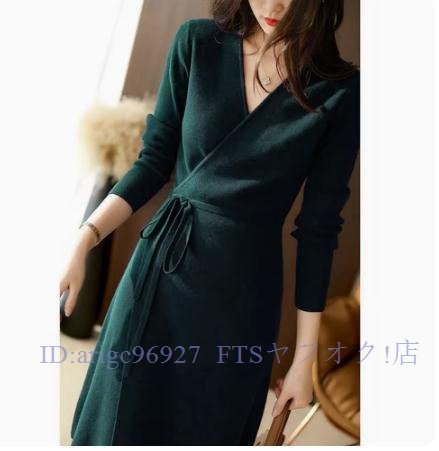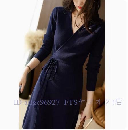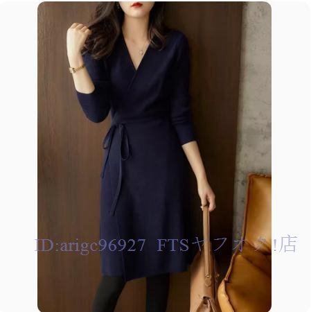 A6536☆新品秋冬 ニット ワンピース オシャレ Vネック ニット ひざ丈ワンピース Aライン 着痩せ 韓国風 30代40代50代 紺