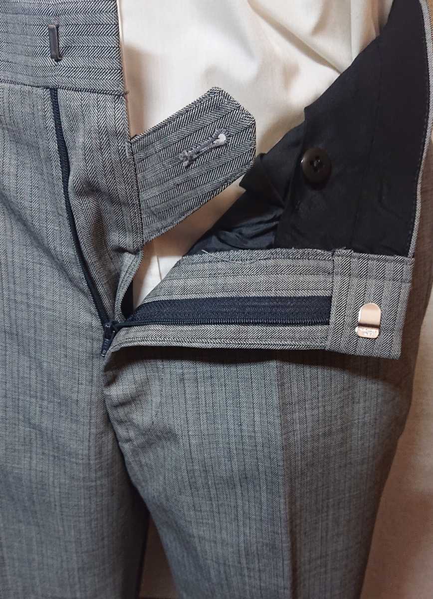 サイズ⇒YA8(82) ジャケット⇒着丈76cm、肩幅46cm、チェスト109cm、袖丈64cm パンツ⇒ウエスト82cm、股上26cm、ワタリ幅34.2cm、裾幅21.3cm、股下96cm ※測り方によって誤差は生じます。 色・柄⇒ライトグレー、ヘリンボーン 表地⇒ウール53%、ポリエステル40%、シルク5%、ポリウレタン2% 裏地(総裏)⇒ポリエステル100% 袖裏⇒キュプラ100% ベント⇒センターベント ステッチ⇒入り 袖ボタン⇒4個、キッスボタン パンツ⇒ノータック 商品状態⇒新品 着用季節⇒秋冬 R3-201122XA |