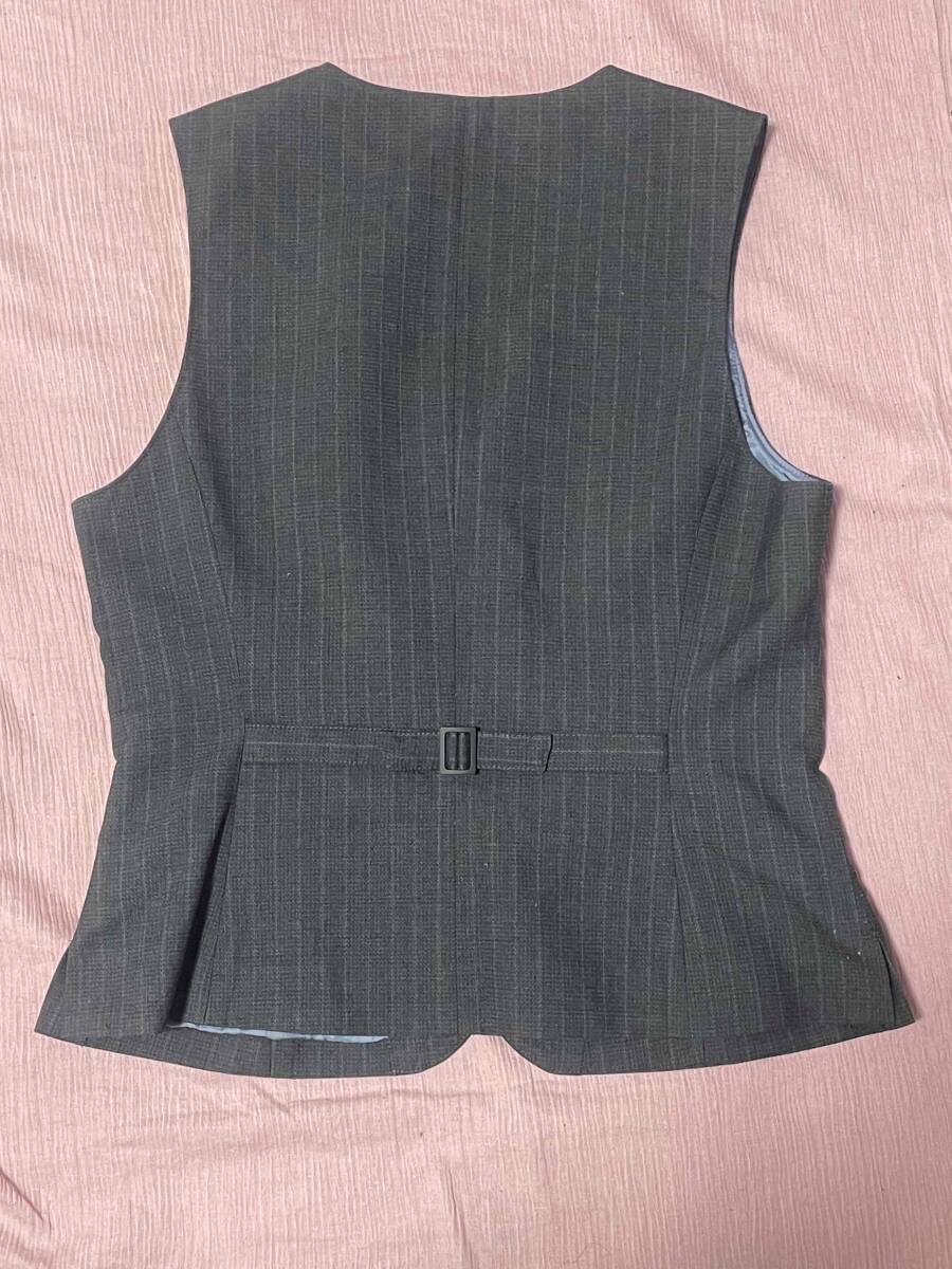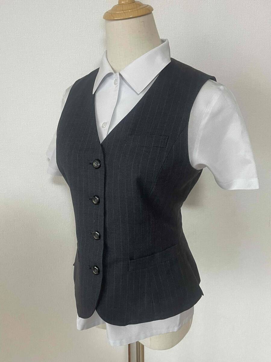 ※Cランク【中古】ALPHAPIER_11号ベスト(チャコールグレー:ストライプ)AR2819-1/アルファピア/かわいい会社事務服/おしゃれOL制服