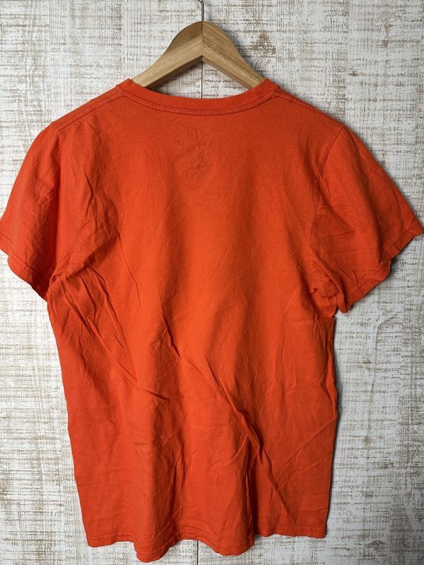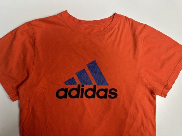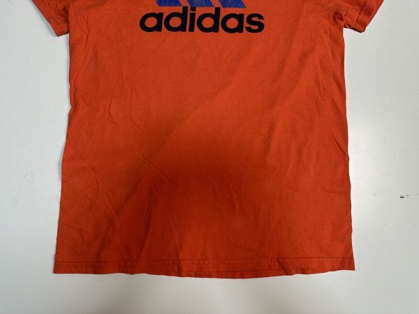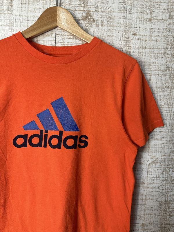 ●US USED adidas アディダス Tシャツ プリント ロゴ スポーツ オレンジ【S】コットン