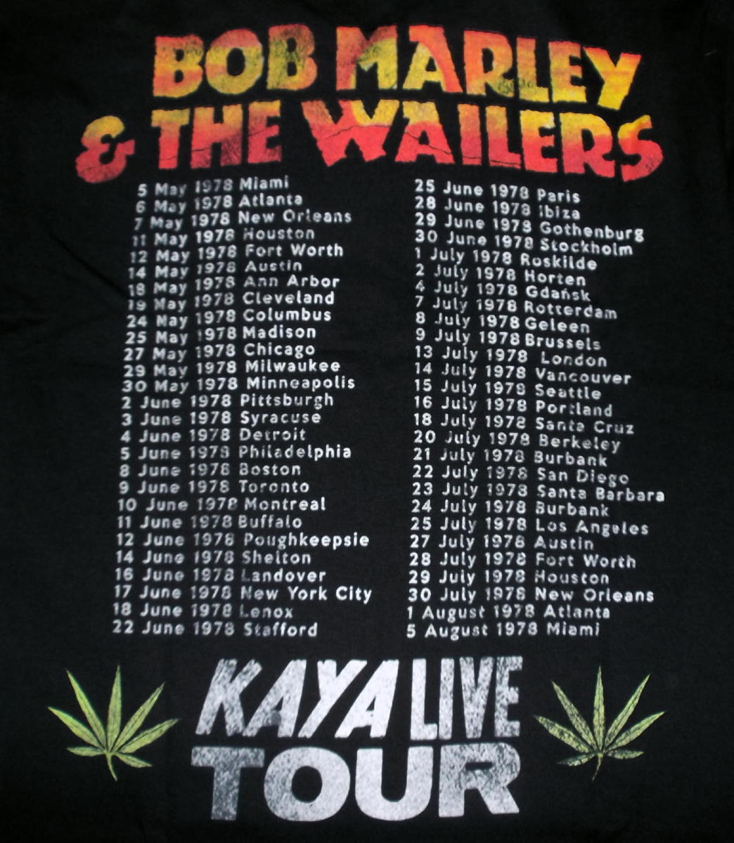 | BOB MARLEY UNISEX T-SHIRT: KAYA TOUR (BACK PRINT) 正規品 正規品 レゲエキング、ボブマーリーのオフィシャルTシャツ「KAYA WORLD TOUR 」です。 ボブマーリー絶頂期ともいえる1978年にリリースされたアルバム「KAYA」のリリースに伴い 1978年5月にミシガン州アナーバーでスタート、1978年8月にマイアミで終了した「KAYA WORLD TOUR」のデザイン復刻!! フロントにBOBのモノクログラフィックのコラージュとツアーロゴ, バックにはツアーデート(最初の6つのショーは、ジュニアマービンのコカイン問題で延期),カッコいいです!! OLD SKOOL, ROOTS系がお好きな方にもお勧め!! Mサイズ 170cm~175cm位の方に良いかと思われます。肩幅45cm, 身幅48cm, 着丈70cm ボブマーリーのオフィシャルメーカーZION社製 新品・正規品 郵メール便送料¥250(代引き不可・紛失補償なし) ACE CAFE LONDON、LUCKY13、THRASHER、Sailor Jerry等~アメキャラ・企業ロゴ等ライセンスTシャツ、RATFINK関連品、レゲエ・バンドTシャツ等取り扱っております。 ** 他にも色々出品中です。 CWbm IWTS | |||||||