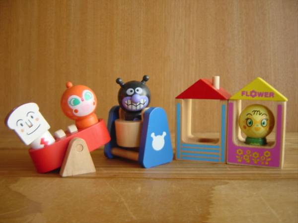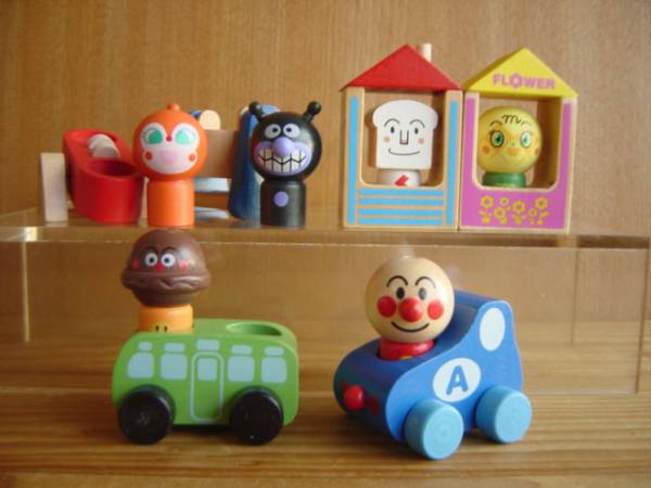 1.アンパンマン+パトカー 2.ばいきんまん+ブランコ 3.ドキンちゃん+シーソー 4.メロンパンナちゃん+おはなやさん 5.しょくぱんまん+パンこうじょう 6.カレーパンマン+みどりのバス ◇大好評木製シリーズ! 今度はアンパンマンタウン! |