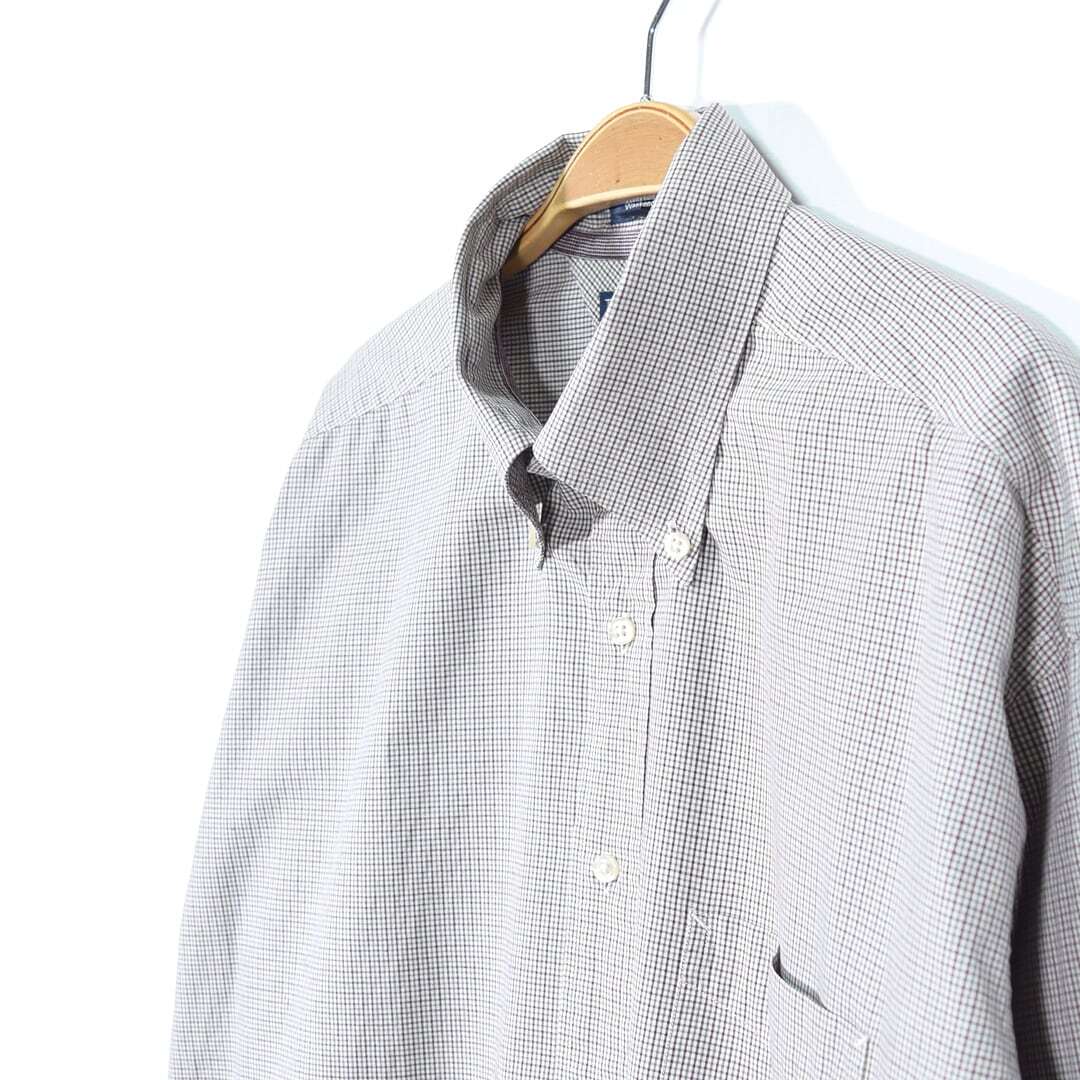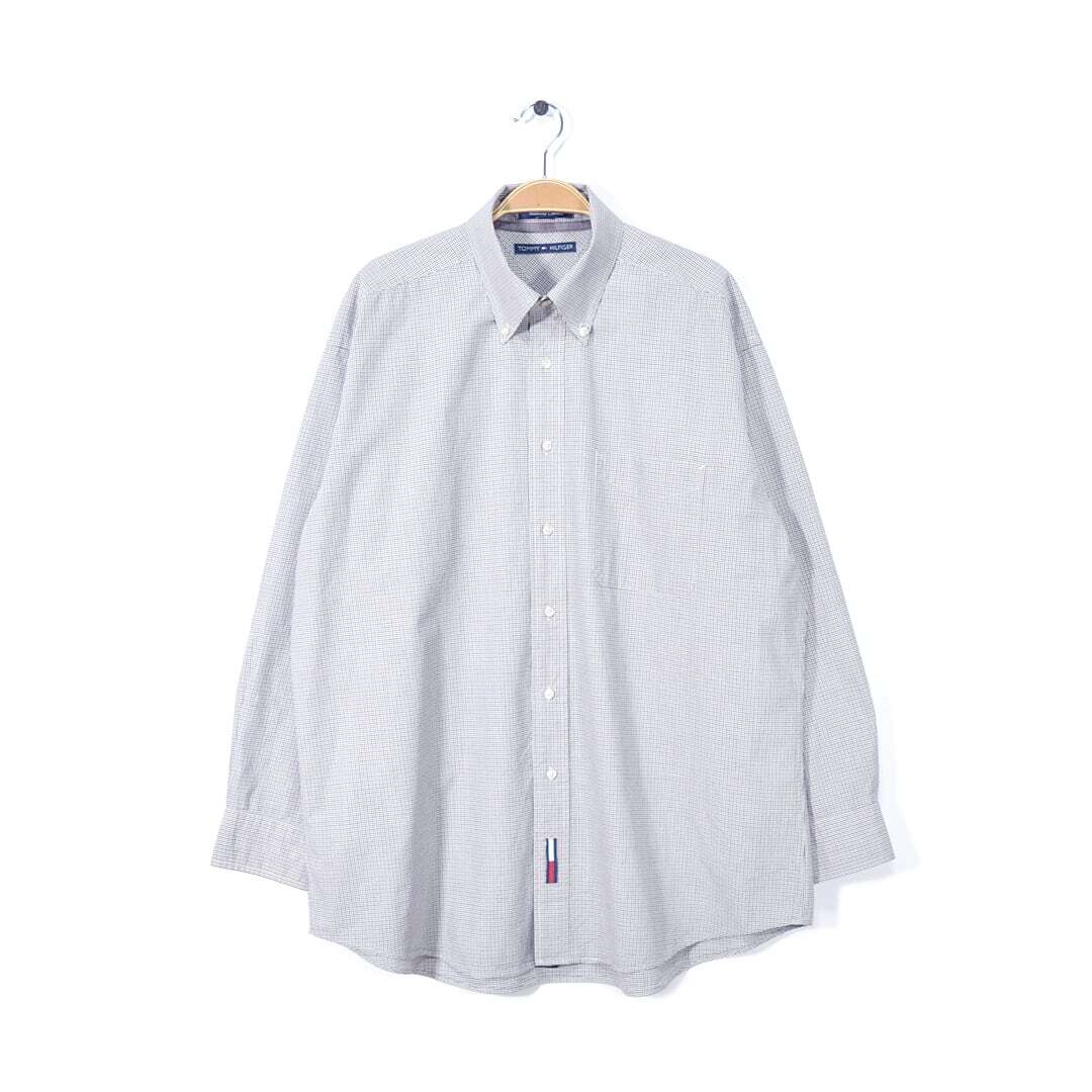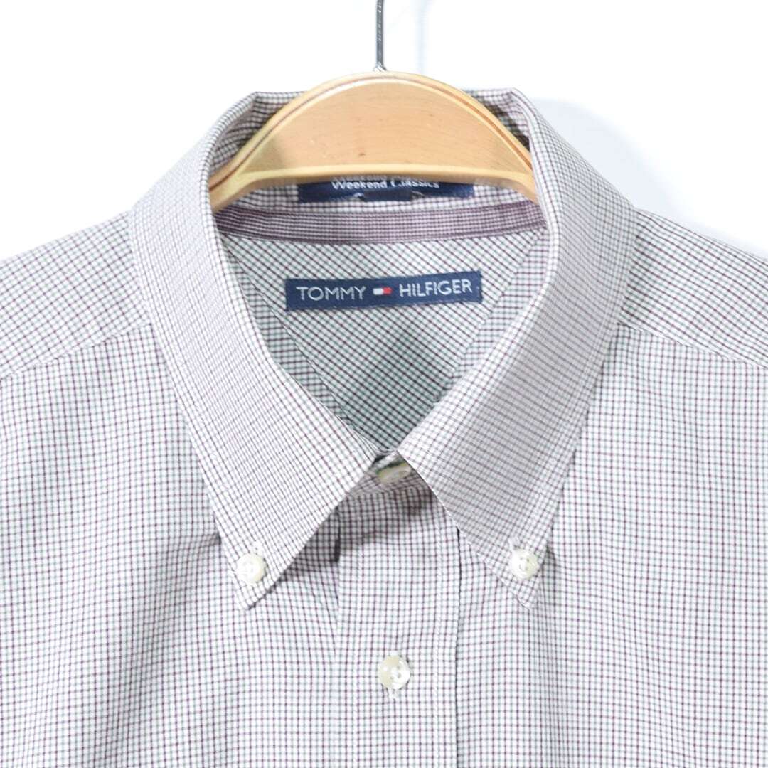 トミーヒルフィガー ボタンダウンシャツ ワンポイントロゴ ブラウン系チェック 長袖シャツ TOMMY HILFIGER サイズL相当 古着 @CA1317