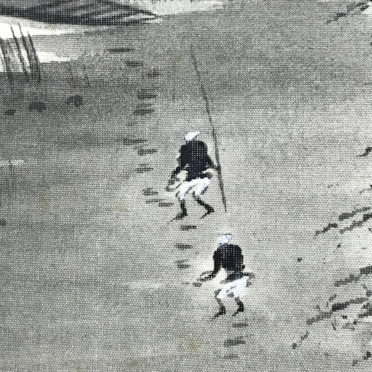 【作品状態】 本紙は絹本肉筆です。本紙は薄汚れ全体に糊シミあります。表装は多少の薄汚れ、巻シワあります。