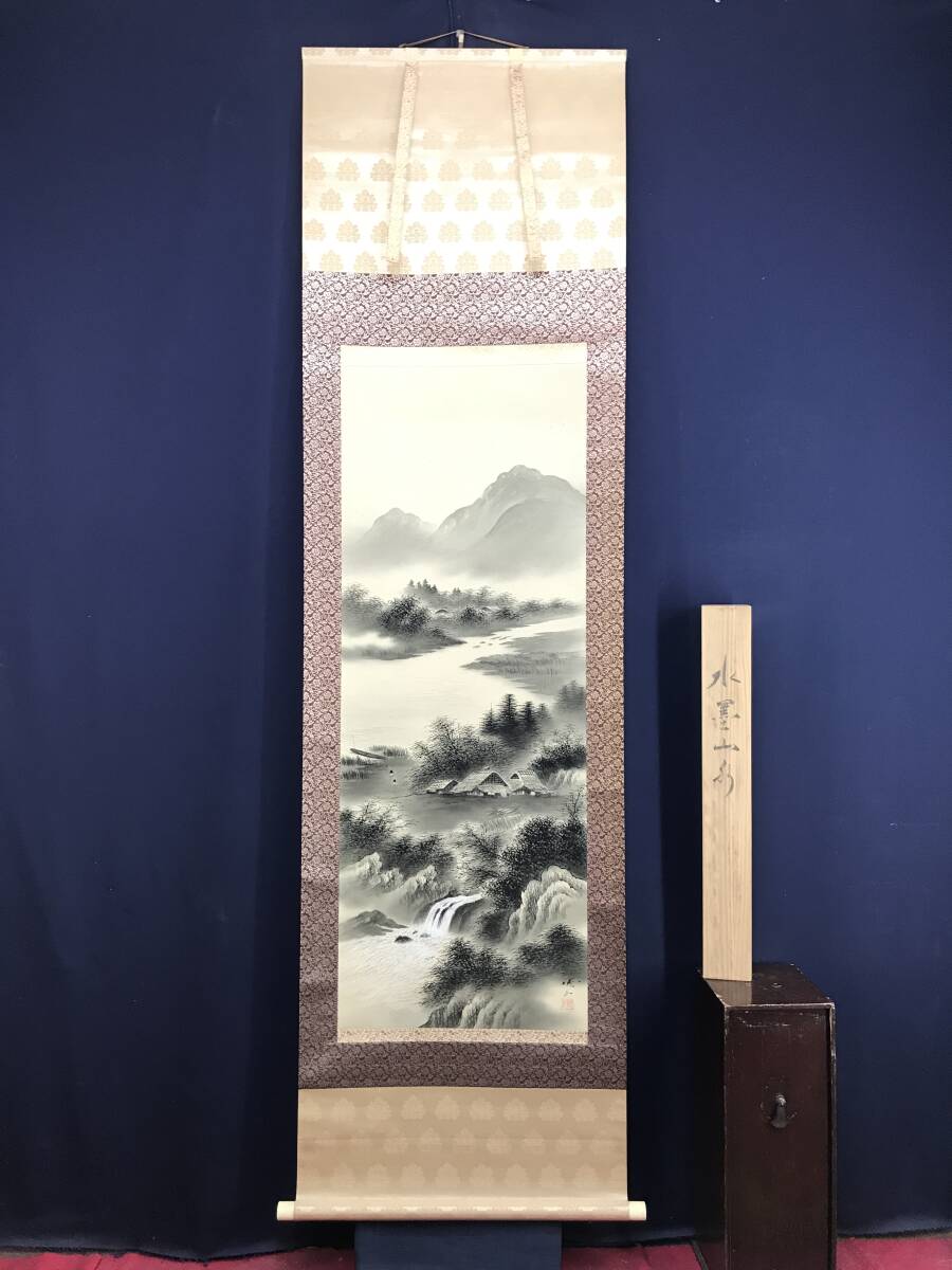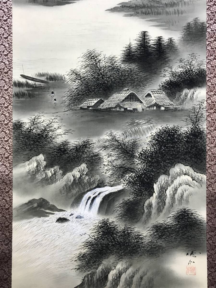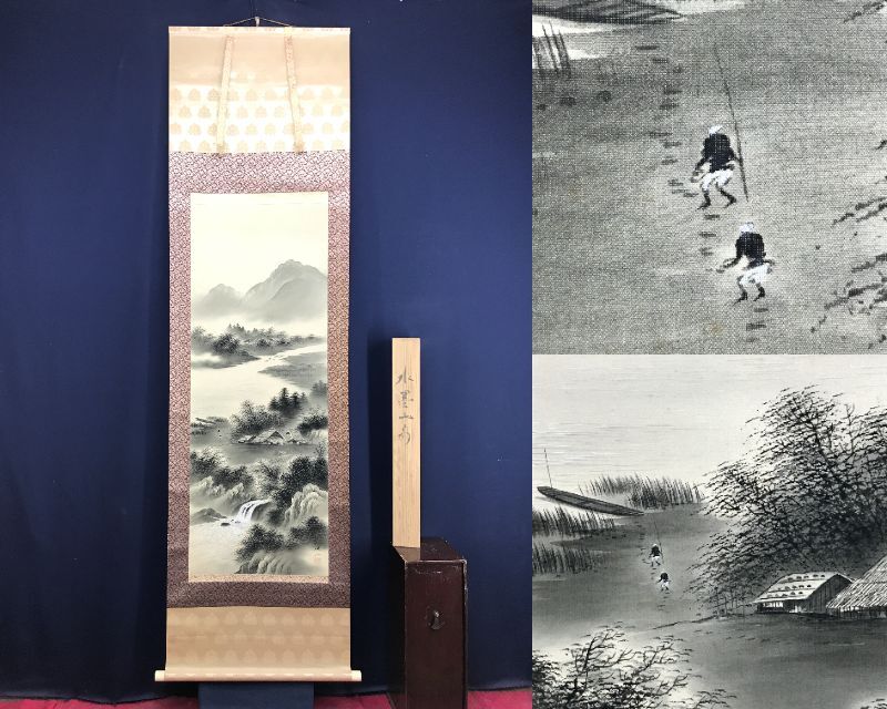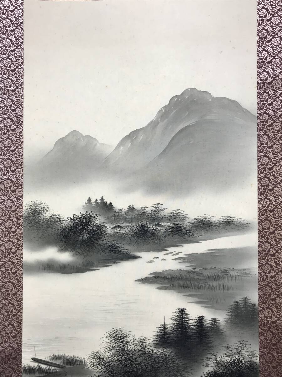 真作/川口穂村/山水漁夫図/山水図/釣人図/掛軸☆宝船☆AF-103
