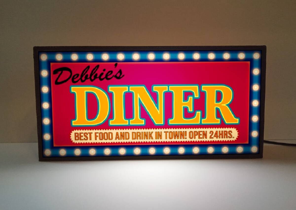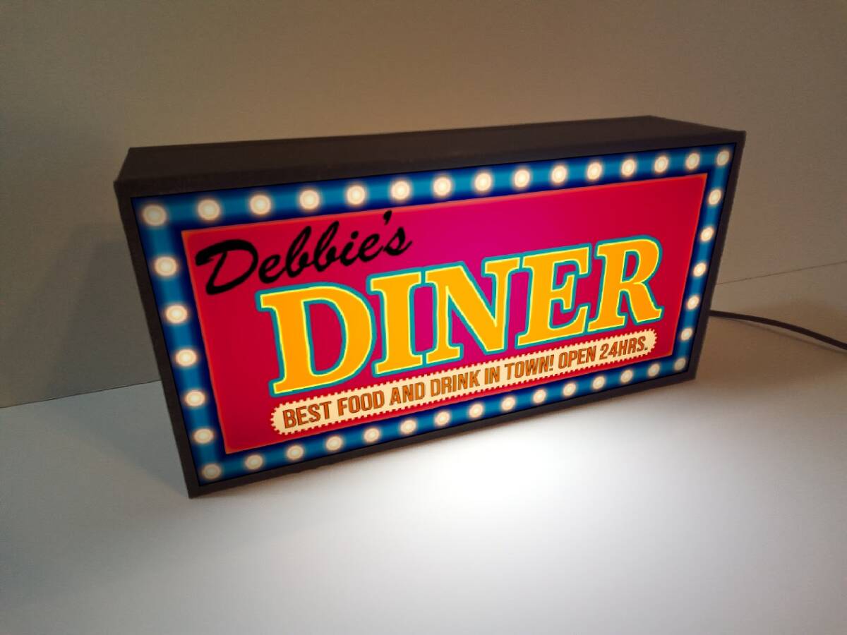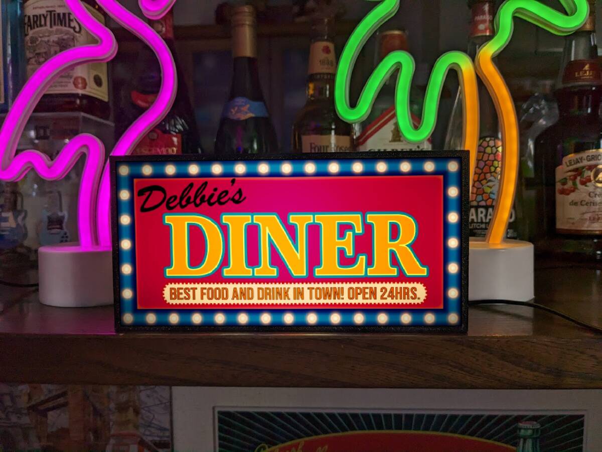 店舗、自宅の窓際・カウンター・棚・テーブルやちょっとしたスペース、車内・ガレージ・キッチンカー・屋台・イベント・パーティーなどに 邪魔にならず丁度良い大きさの【ダイナー】ミニチュア電飾看板です★ オーダー無料、プレゼントにも大変好評頂いております★ ◆サイズ◆縦10センチ×横20センチ×奥行き5センチ ◆材質◆本体(PLAプラスチック製)・表示面(IJバックライト発光フィルム貼り) ◆電源◆USB供給電源(家庭用コンセントコネクタ付き) 〇他サイズ〇 ●Mサイズ 150mm×300mm ●Lサイズ 200mm×400mm ●LLサイズ 300mm×600mm ●3Lサイズ 400mm×800mm ◆オリジナルデザイン・オーダーも承っておりますので、お気軽にお問い合わせください。 自社製造製品 店舗 自宅 キッチンカー フードトラック 屋台 パーティー イベント ミニチュア サイン ランプ ライト 照明 看板 インテリア雑貨 置物 雑貨 テーブル カウンター 電飾看板 電光看板 光源の種類...LED