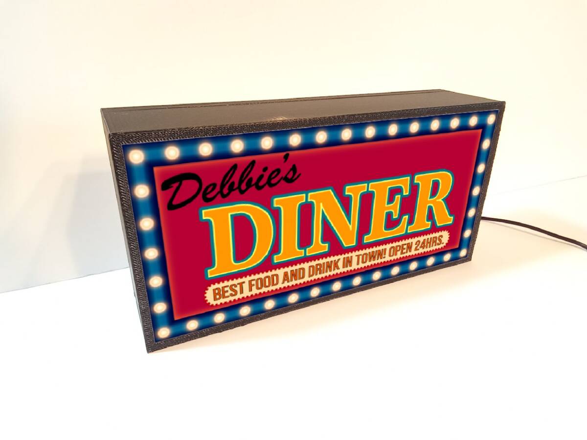 店舗、自宅の窓際・カウンター・棚・テーブルやちょっとしたスペース、車内・ガレージ・キッチンカー・屋台・イベント・パーティーなどに 邪魔にならず丁度良い大きさの【ダイナー】ミニチュア電飾看板です★ オーダー無料、プレゼントにも大変好評頂いております★ ◆サイズ◆縦10センチ×横20センチ×奥行き5センチ ◆材質◆本体(PLAプラスチック製)・表示面(IJバックライト発光フィルム貼り) ◆電源◆USB供給電源(家庭用コンセントコネクタ付き) 〇他サイズ〇 ●Mサイズ 150mm×300mm ●Lサイズ 200mm×400mm ●LLサイズ 300mm×600mm ●3Lサイズ 400mm×800mm ◆オリジナルデザイン・オーダーも承っておりますので、お気軽にお問い合わせください。 自社製造製品 店舗 自宅 キッチンカー フードトラック 屋台 パーティー イベント ミニチュア サイン ランプ ライト 照明 看板 インテリア雑貨 置物 雑貨 テーブル カウンター 電飾看板 電光看板 光源の種類...LED