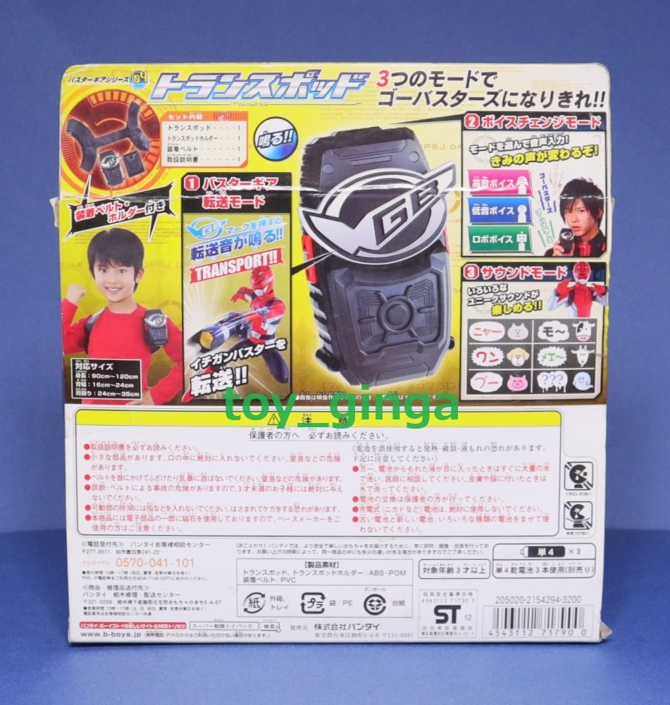 | 商品名 | 特命戦隊ゴーバスターズ バスターギアシリーズ トランスポッド |