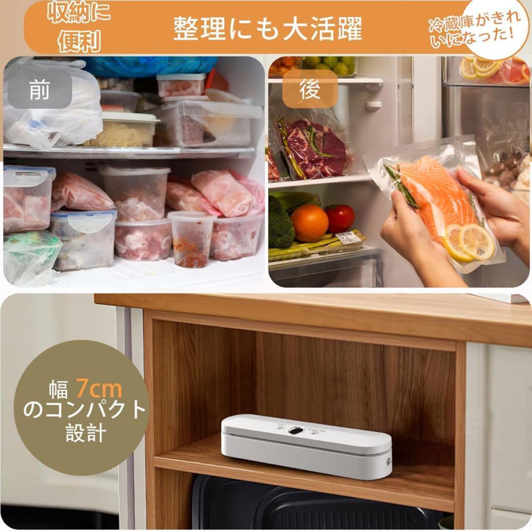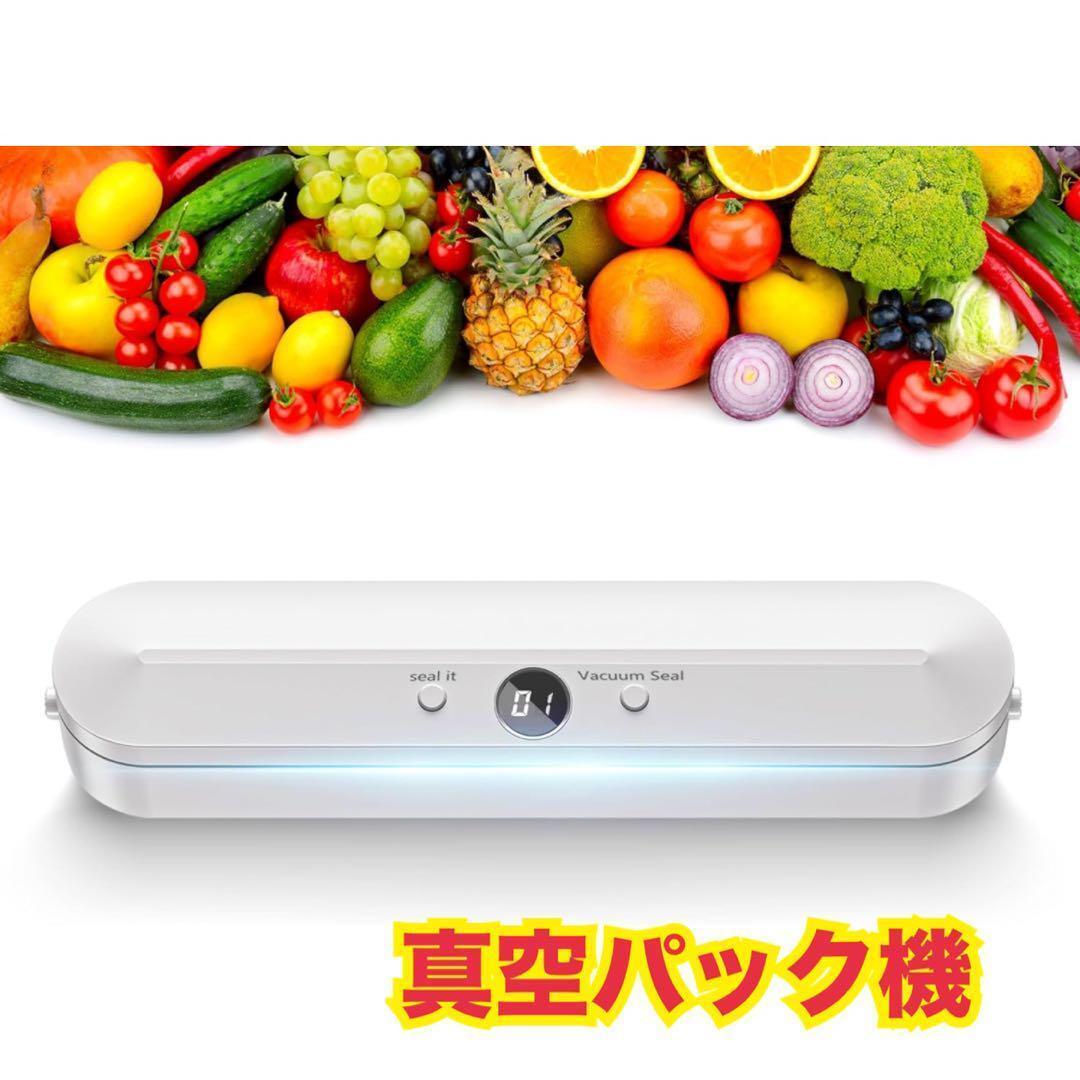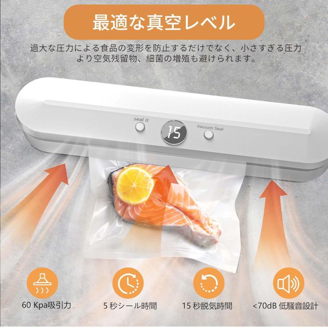 真空パック機 真空脱気 フードシーラー 真空保存 真空パック器 密封 コンパクト 食材保管 収納補助 鮮度長持ち 軽量 低騒音 ホワイト
