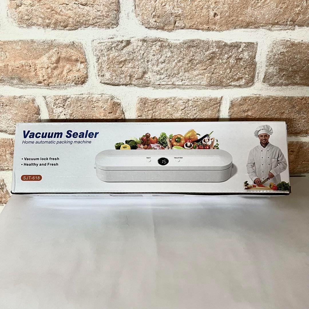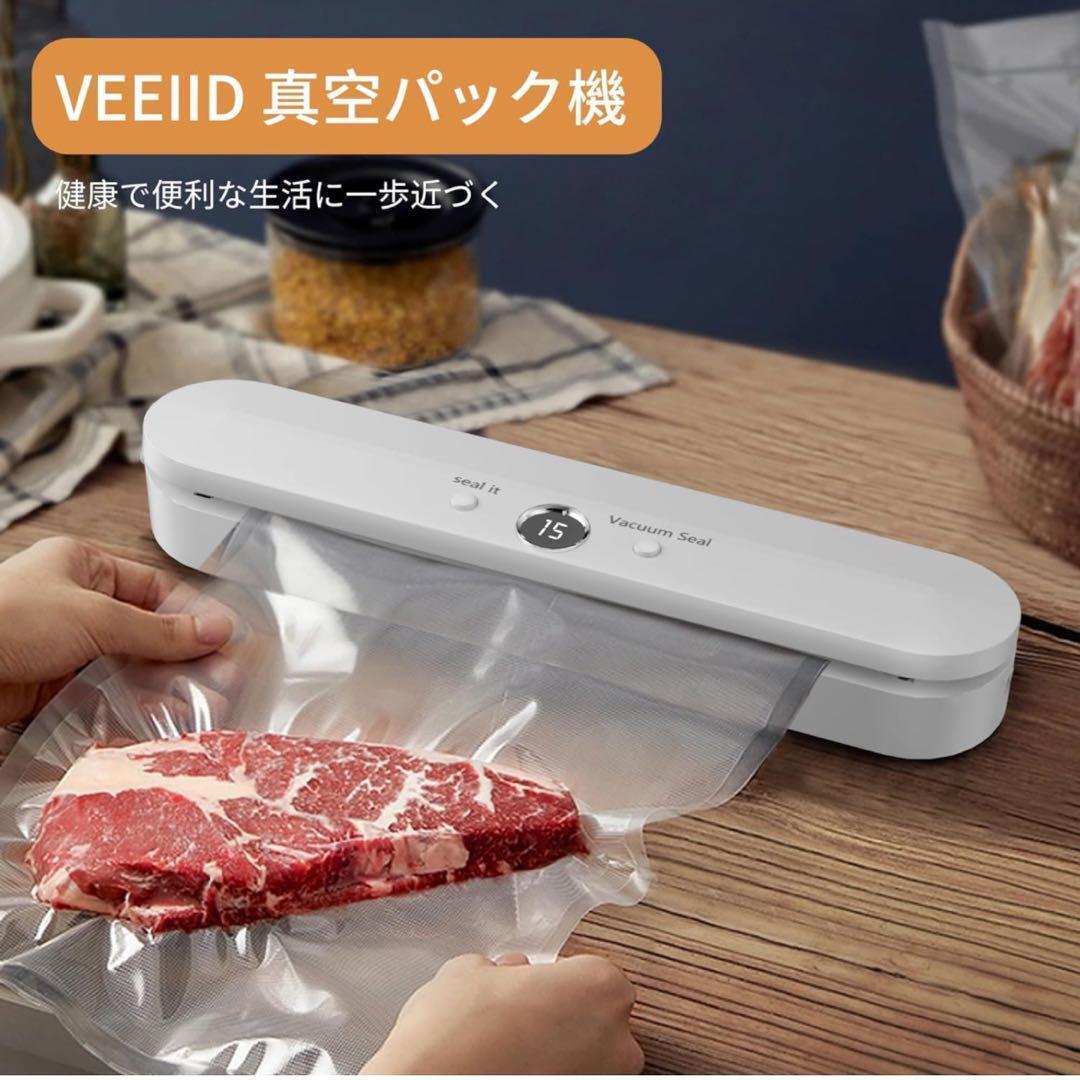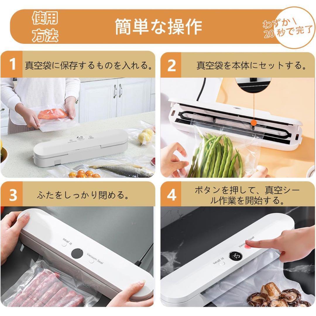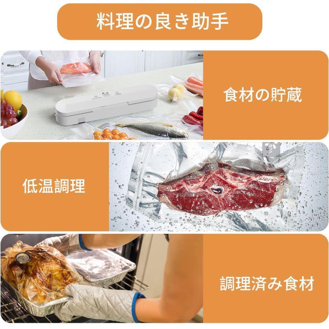 真空パック機 真空脱気 フードシーラー 真空保存 真空パック器 密封 コンパクト 食材保管 収納補助 鮮度長持ち 軽量 低騒音 ホワイト