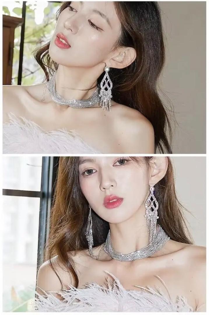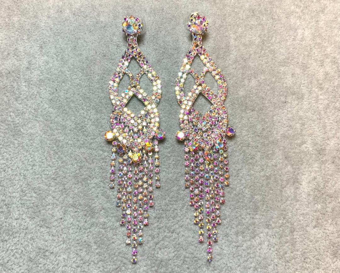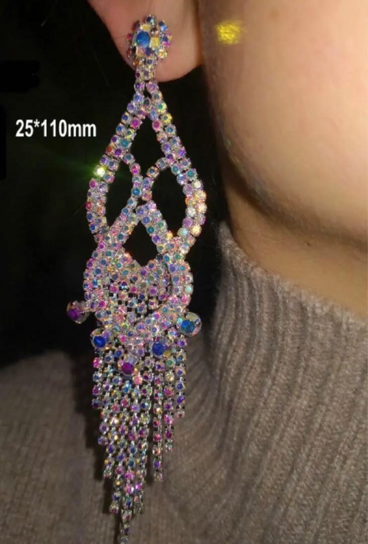 828★新品未使用★レディースクリスタル ロング ピアス 韓国 社交ダンス ドレス かわいい 結婚式 アクセサリー ジュエリー カジュアル