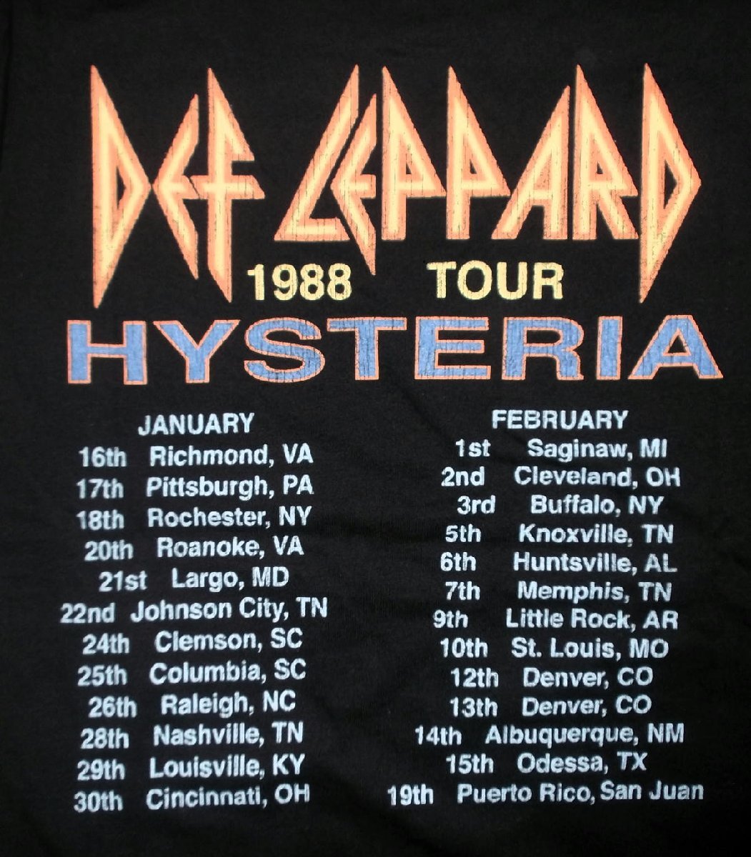 | DEF LEPPARD UNISEX T-SHIRT: HYSTERIA '88 (BACK PRINT) 正規品 1980年代初頭にアイアン・メイデン、サクソンなどと並んで、 NWOBHM (New Wave Of British Heavy Metal) ムーヴメントの中心的存在として知られる イギリスのハードロックバンド、デフレパードのTシャツ「HYSTERIA '88」です。 『炎のターゲット』と同様に全米で1000万枚を超える空前の大ヒットを飛ばした1987年リリースの4thアルバム『ヒステリア』 「ポップ・メタルとしては間違いなく史上最高のレコード」と評されるその作品にに伴い、 センター・ステージを採用して15ヶ月間にわたって開催されたツアー時のデザインを復刻!! アルバム・カバーを背景に,飛び出す豹・LEOPARDのいかにもDEF LEPPARDなデザイン, バックには1月~2月のツアー・デート入り 新品・正規品 Mサイズ 170cm~175cm位の方に良いかと思われます。肩幅43cm, 身幅49cm, 着丈73cm 郵メール便送料¥250です。 ACE CAFE LONDON、LUCKY13、THRASHER、Sailor Jerry等~アメキャラ・企業ロゴTシャツ、RATFINK関連品、バンドTシャツ、等取り扱っております。 ** 他にも色々出品中です。 CWBG IWAC iwot | |||||||
