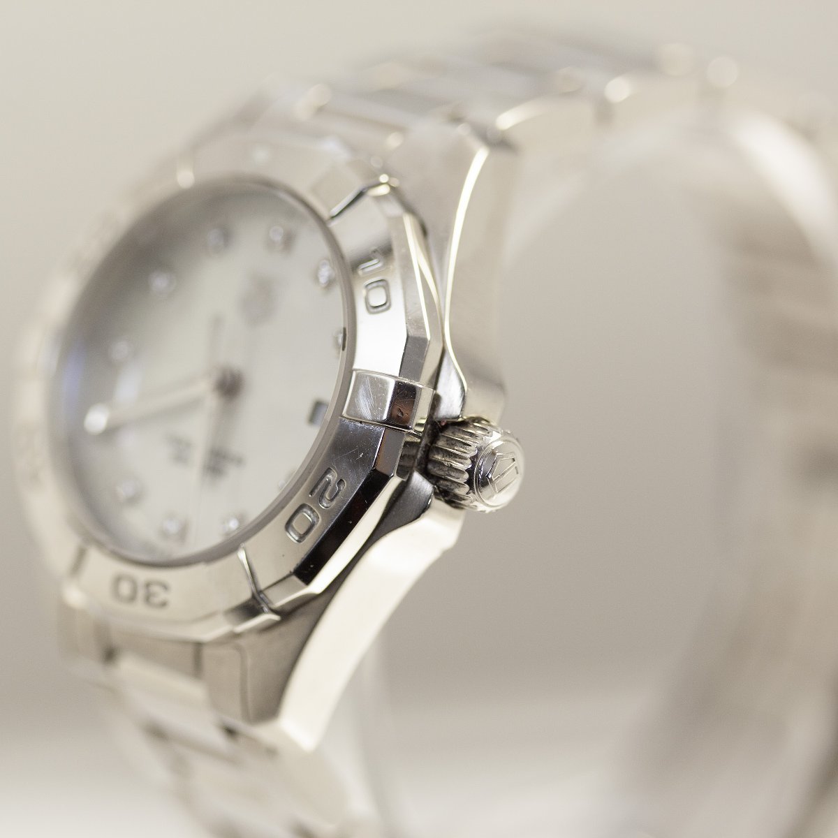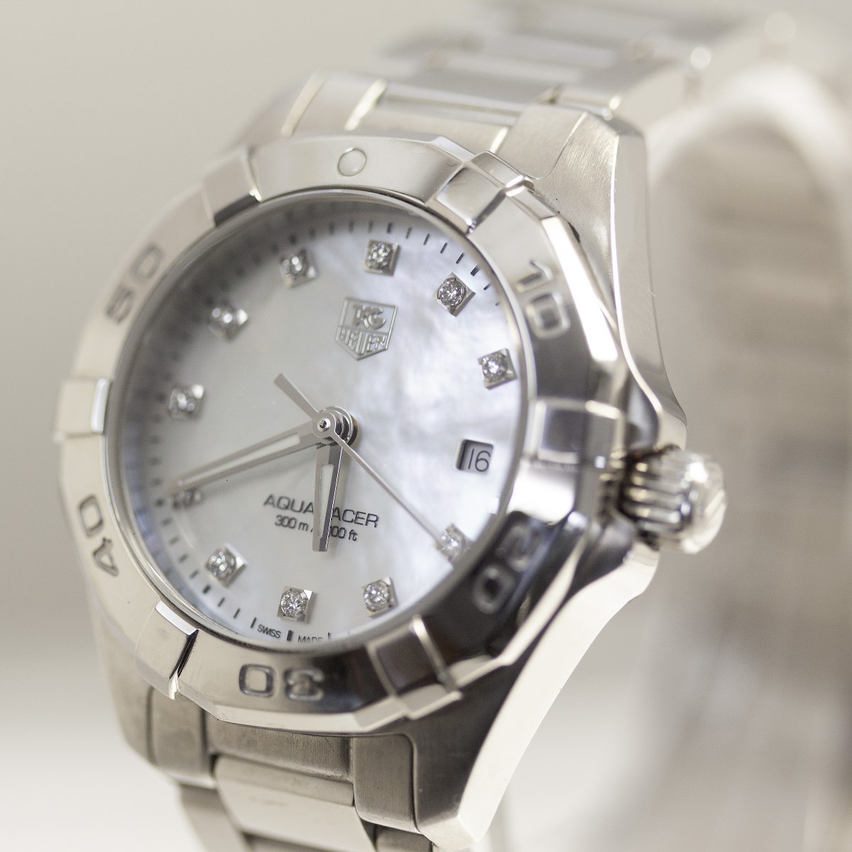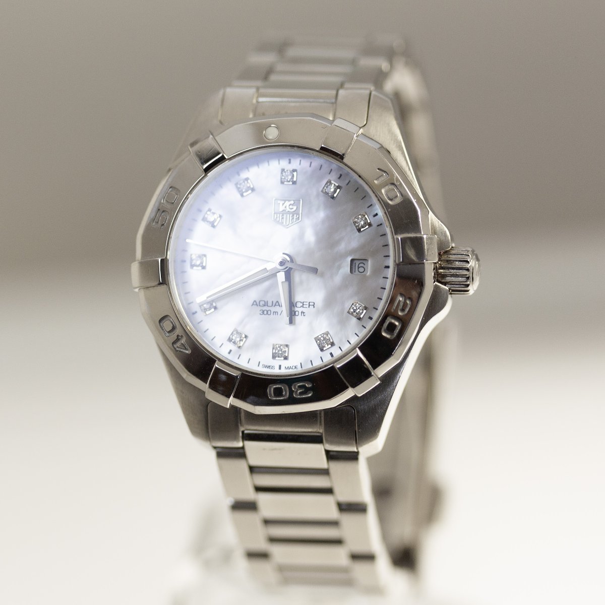 □☆商品仕様、特徴☆□ 参考定価 269,500 文字盤色: 白系色シェル・ダイヤインデックス サイズ:レディース ケースサイズ:27mm(リューズ含まず) 腕周り最大約 15.5cm ムーヴメント:クオーツ 素材:ステンレス ■商品状態■【 】 【時計本体】 正常に動作中です。 【電池について】電池残量は不明ながら、現在は動作中です。