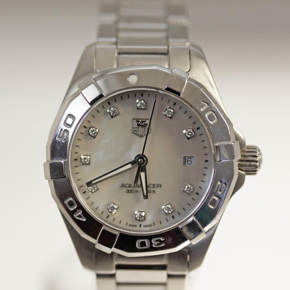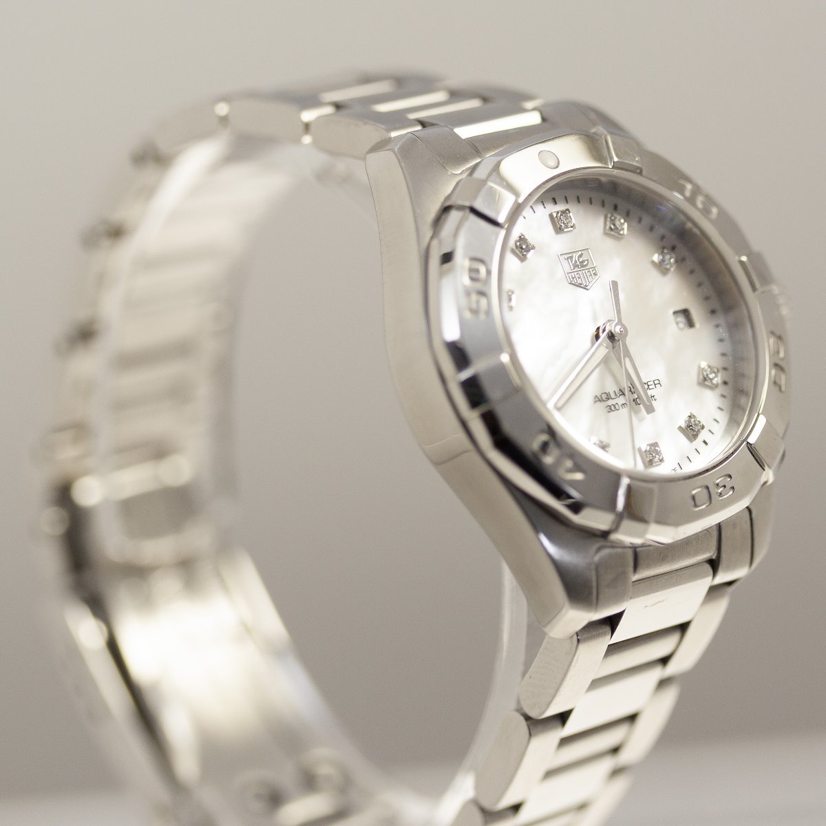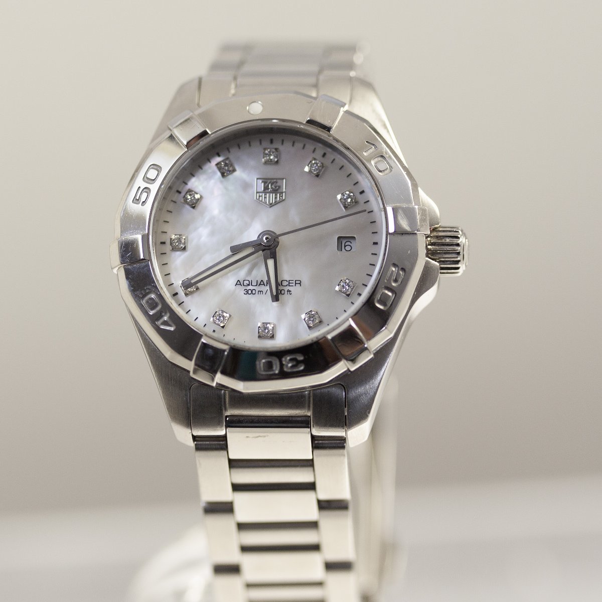 □☆商品仕様、特徴☆□ 参考定価 269,500 文字盤色: 白系色シェル・ダイヤインデックス サイズ:レディース ケースサイズ:27mm(リューズ含まず) 腕周り最大約 15.5cm ムーヴメント:クオーツ 素材:ステンレス ■商品状態■【 】 【時計本体】 正常に動作中です。 【電池について】電池残量は不明ながら、現在は動作中です。