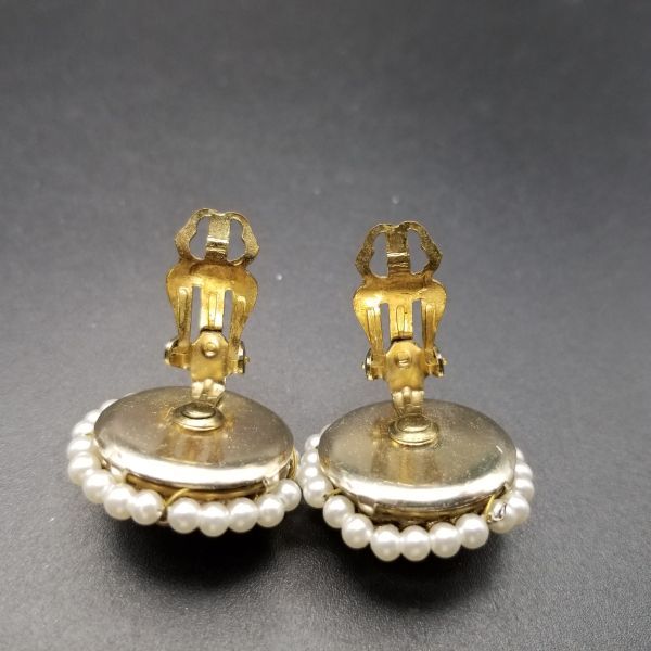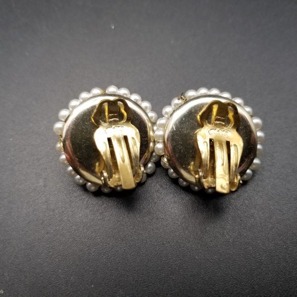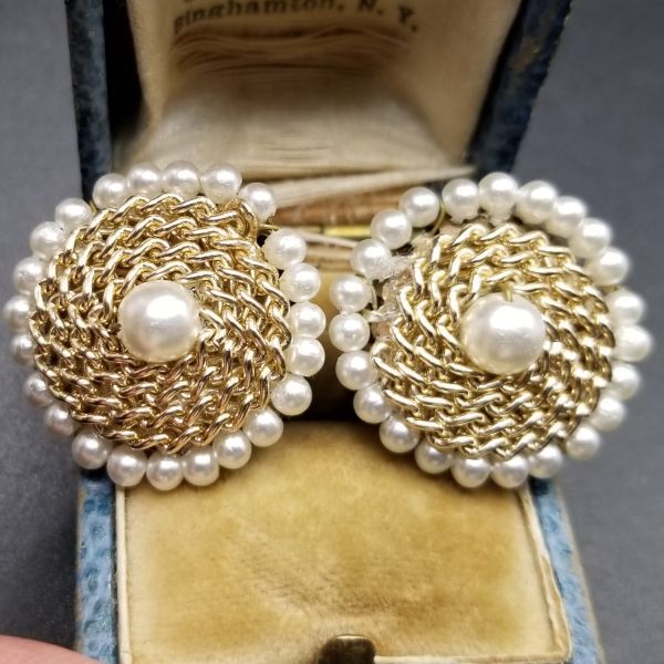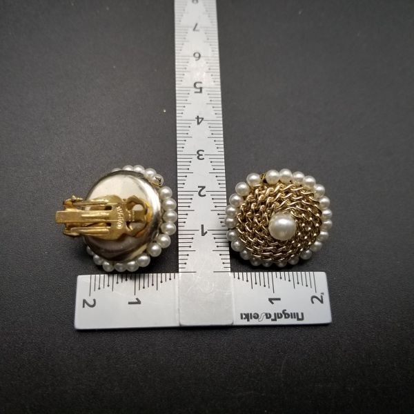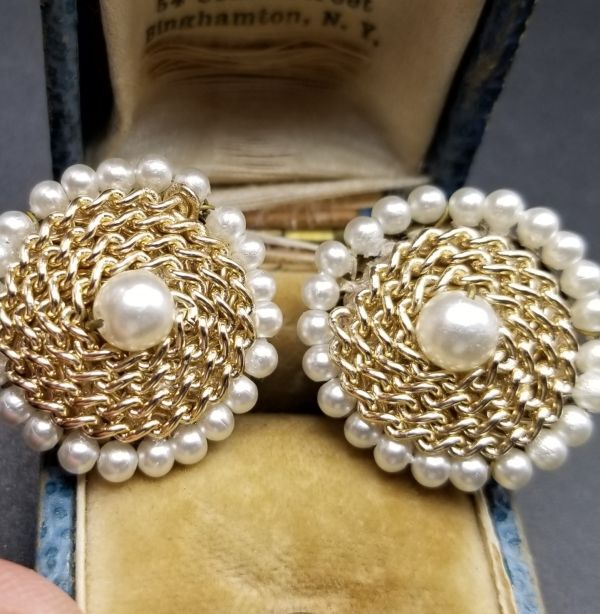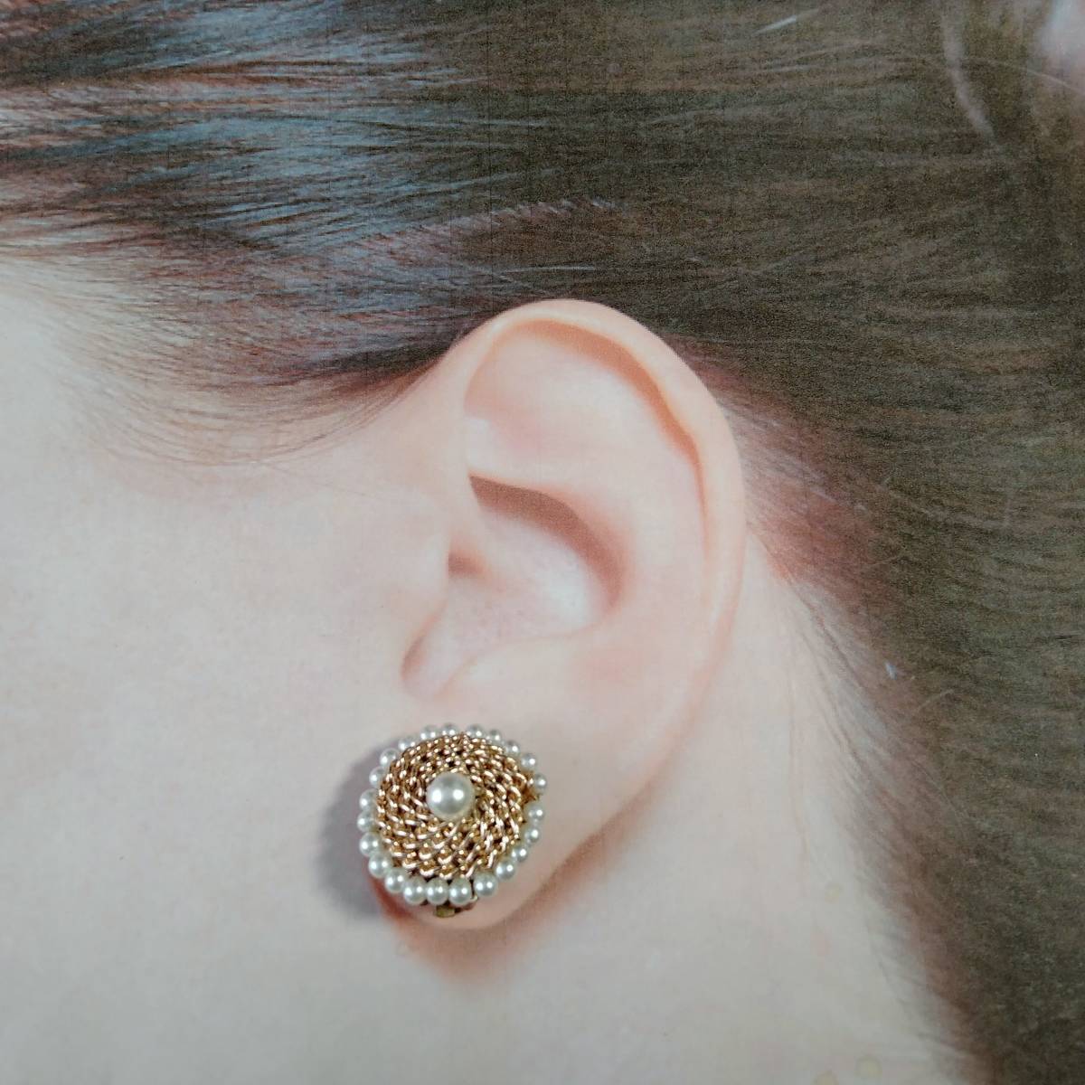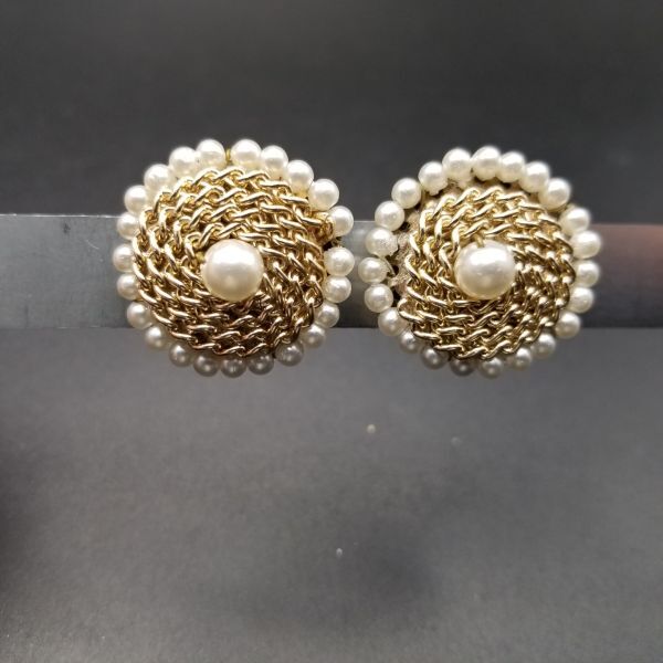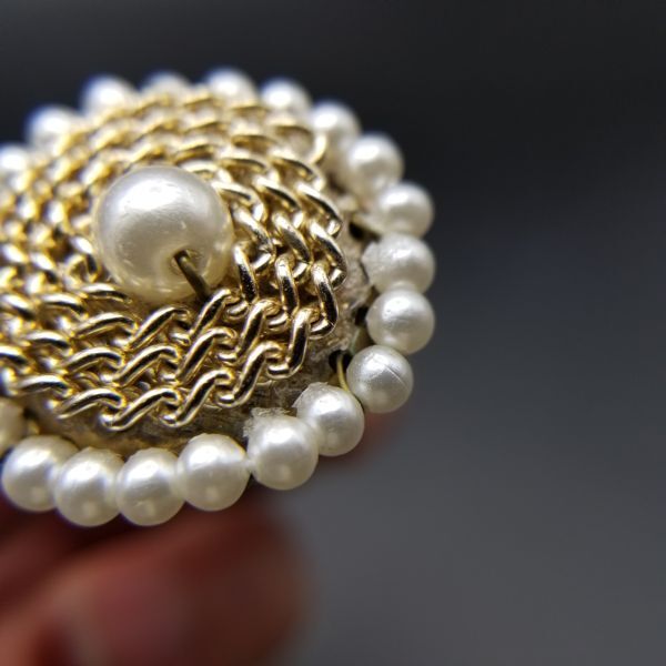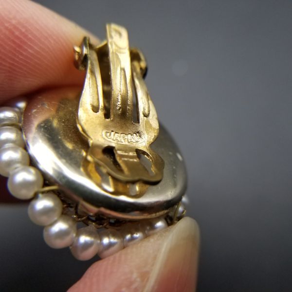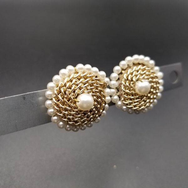 50'60's チェーン パール ラウンド ヴィンテージ イヤリング ゴールドトーン レトロエレガント コスチュームジュエリー JPANA刻印 ADL20