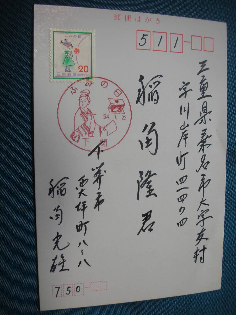エンタイア ふみの日 手紙と少女 初日印消し 昭和54年7月23日 風景印