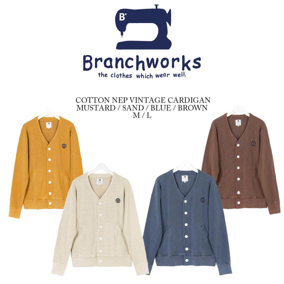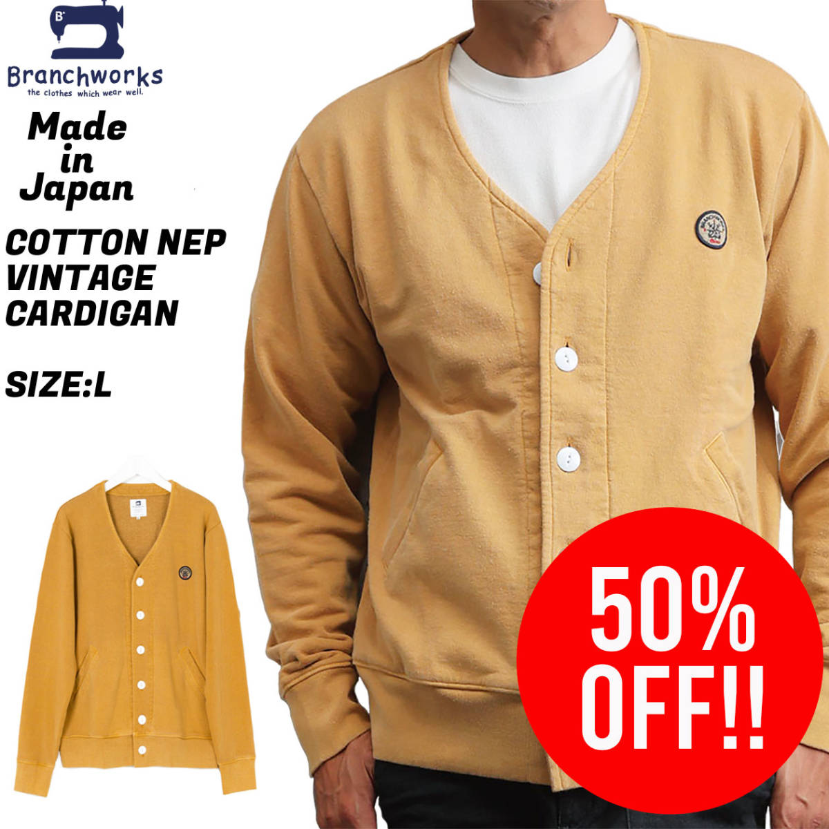 【 Branchworks 】 ブランチワークス 日本製 Made in japan ユニセックス ピグメント コットンネップ 裏毛 カーディガン マスタード L