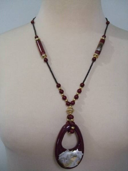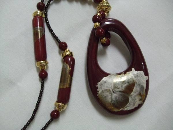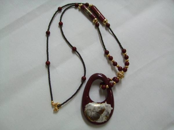 ◇ 限定品 九谷焼 ネックレス 濃い蝦手色