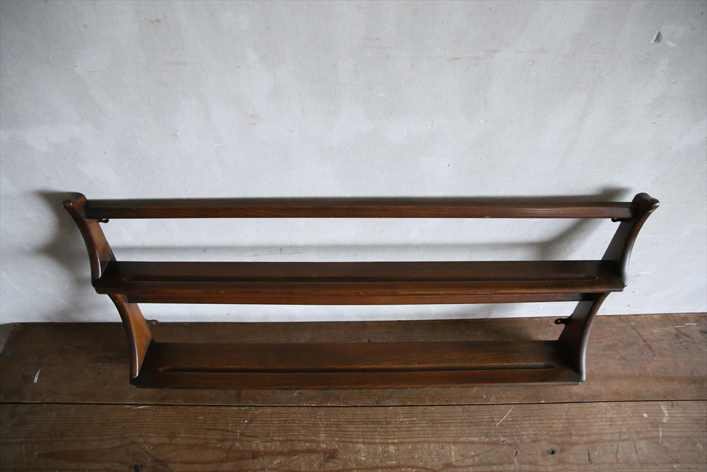 英国アンティーク◇ERCOLアーコール製プレートシェルフ/木製壁掛けラック/飾り棚/皿置き/店舗什器/ディスプレイ台/イギリスビンテージ家具