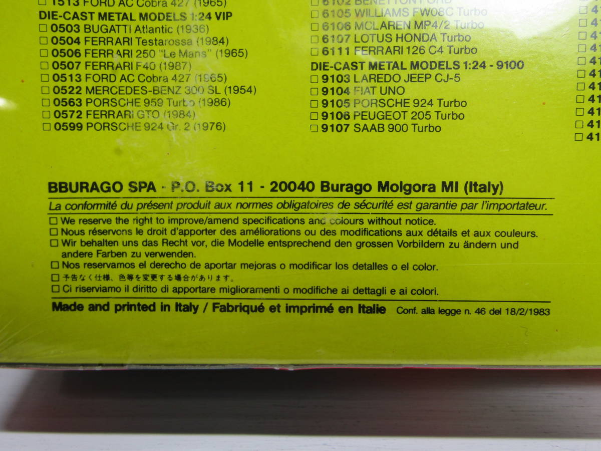 Jaguar 1/24 ジャガー HP160 XK120 1948 Made in Italy イタリア製 ヴィンテージ ブラーゴ GB 1984年製 未組み立てシュリンプ未開封品