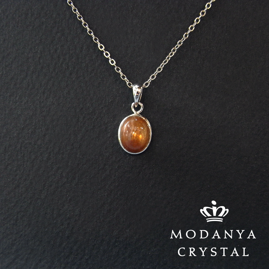 サンストーンはオレンジ色の色味を持ち、主にレピドクロサイト、銅、ゲーサイト、ヘマタイトなどに光が反射して光学効果が現れます。