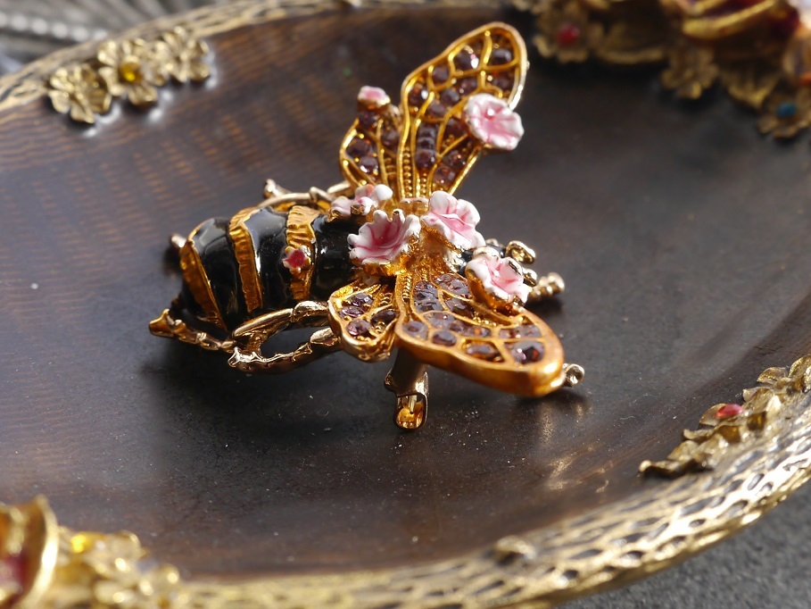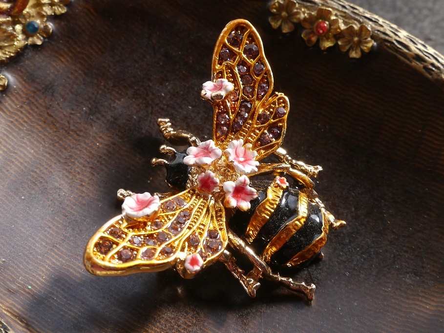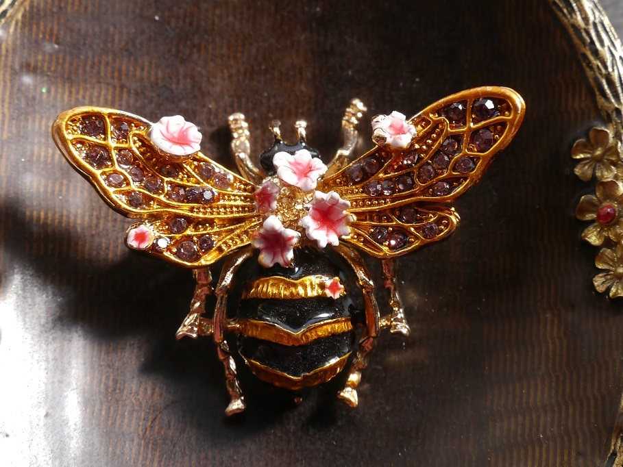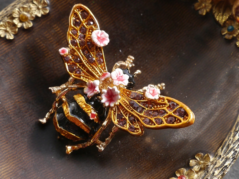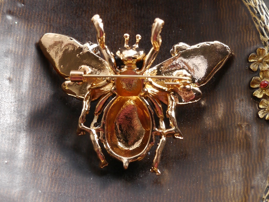 新品アンティーク調お花とミツバチブローチ クラシック ヴィンテージ風 ヴィクトリアン 大きめ