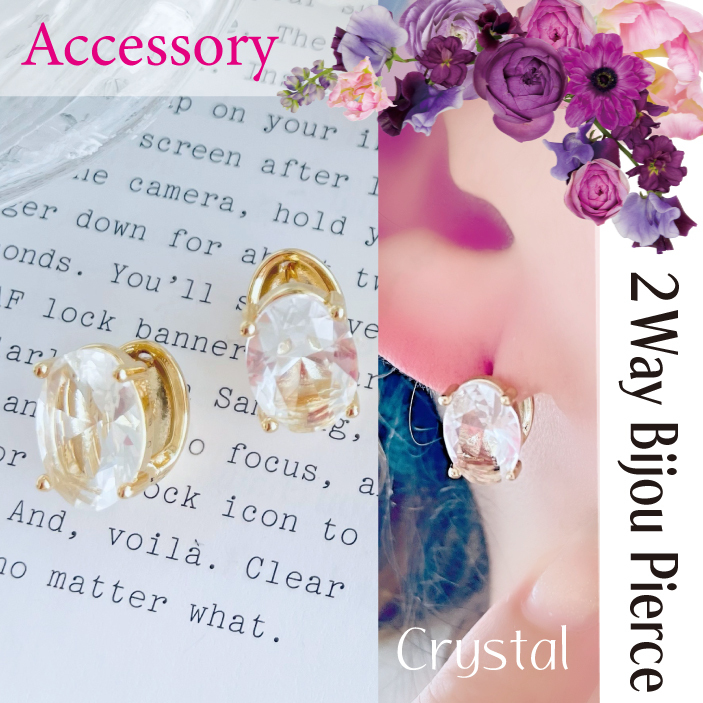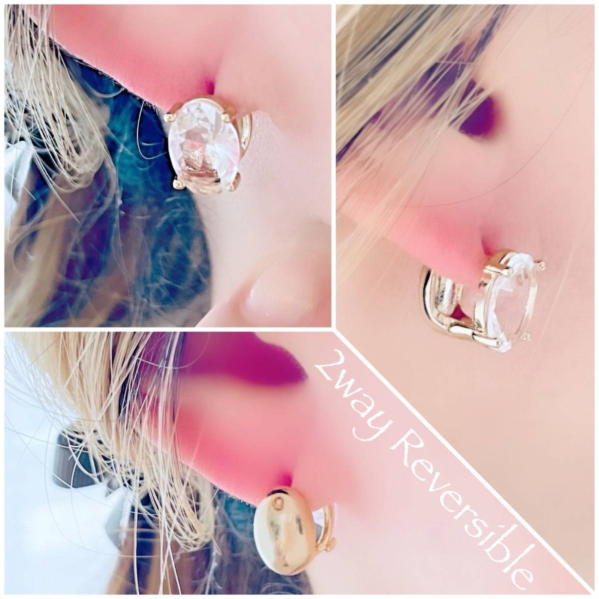 大粒の カット クリスタル をセッティングした リバーシブル で付けられる 2Way デザインピアス☆