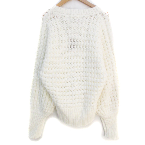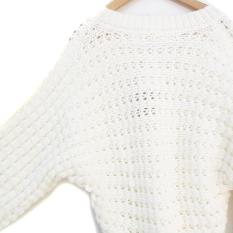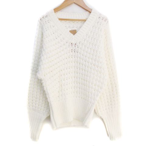 未使用品 オゾック OZOC ニット セーター 長袖 ドルマンスリーブ Vネック 無地 ウール混 M オフホワイト /FF37 レディース