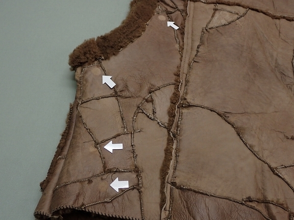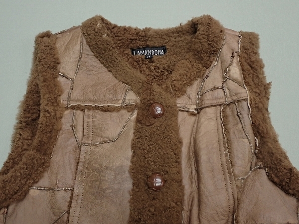 | Lamandora ラマンドラのムートンベストです。くるみ風ボタン、パッチワークデザインです。素敵にお使い頂けると思います。気になる方は是非ご検討下さい。 | |