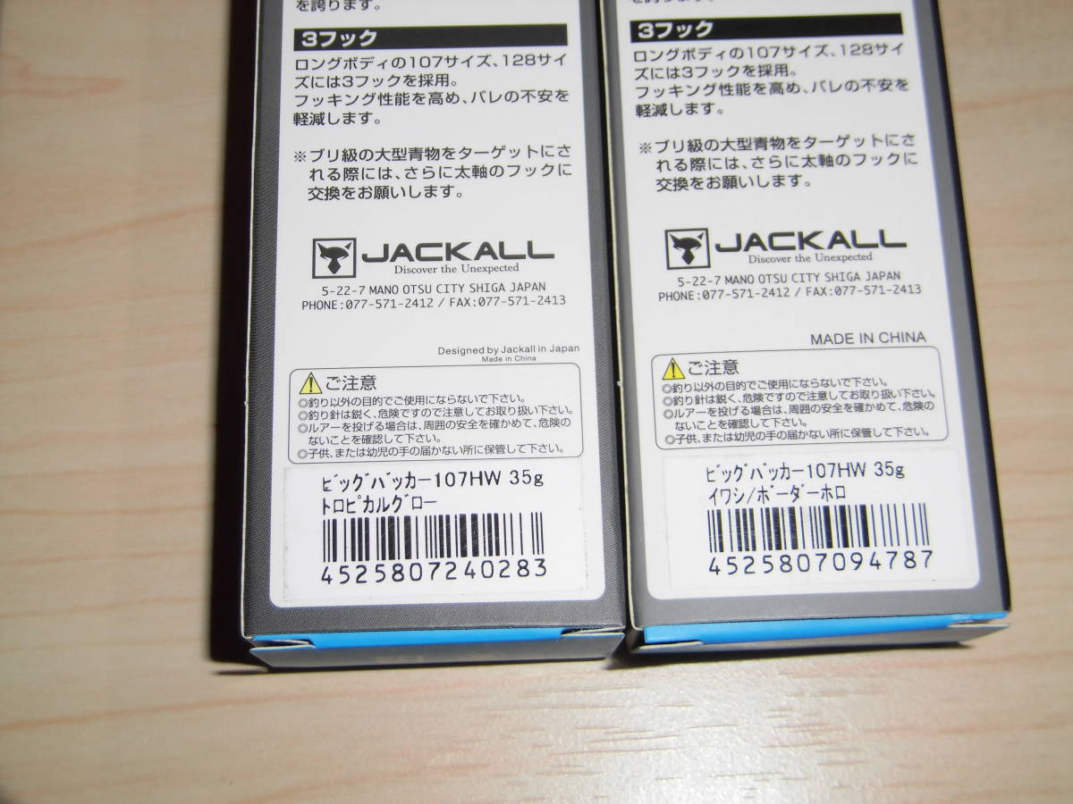 ジャッカル ビッグバッカー 107 HW 35g トロピカルグロー・イワシ/ボーダーホロ 2個セット