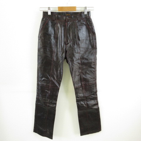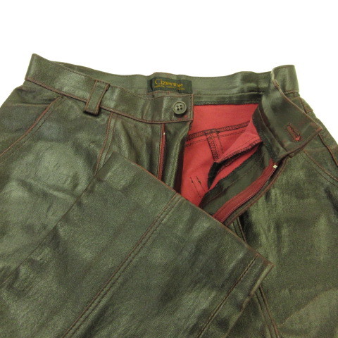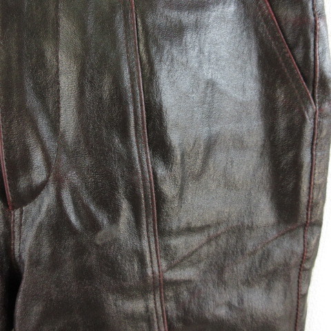 シゼンヌ Cizenne レザーパンツ ロング シープスキン 焦げ茶 ボルドー 9 *T199 レディース