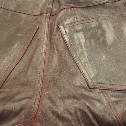 【状態】この商品には下記のようなダメージがあります。 ・ヒップ付近に革特有の色の変色、多少のダメージ ・全体的に保管、着用シワ その他に目立ったダメージはなくまだまだご使用いただける商品です。 ※あくまでも中古品ですので掲載写真や記載内容をご確認いただき、ご理解の上ご購入ください。