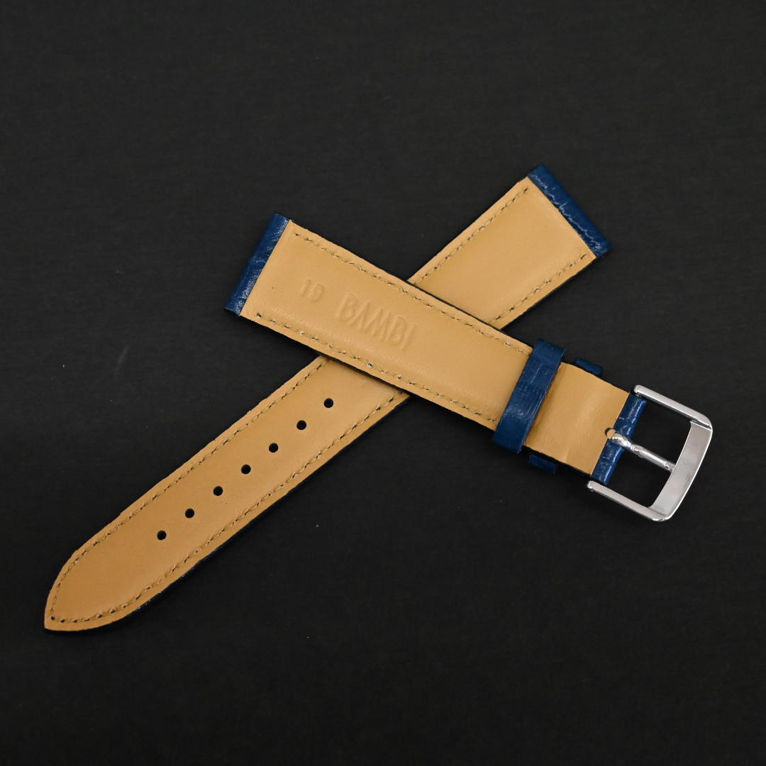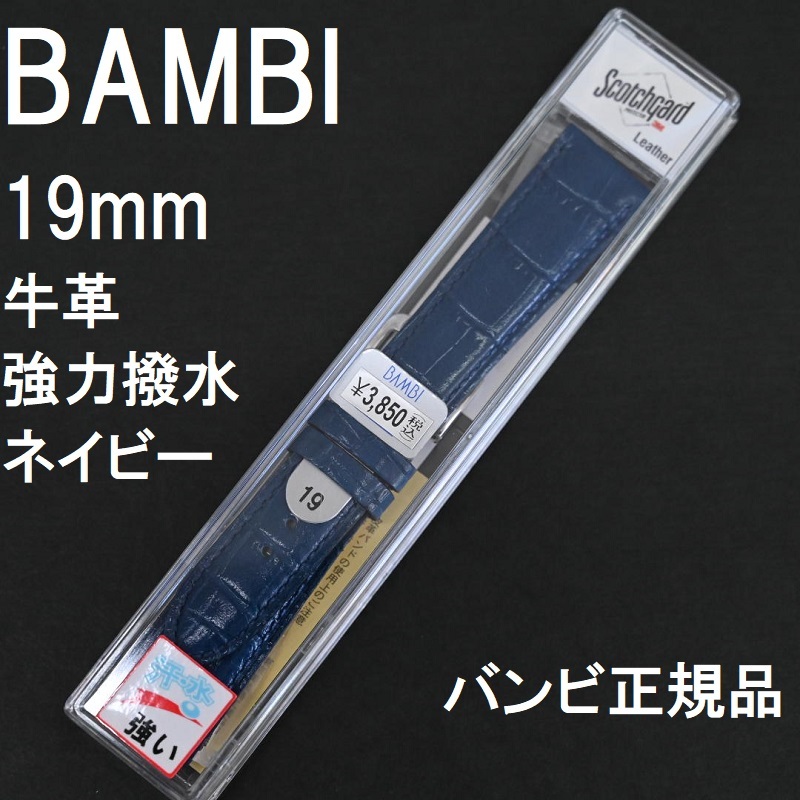 バネ棒付 送料無料★特価 新品★BAMBI 強力撥水 時計ベルト 19mm 牛革バンド 紺 ネイビー★スコッチガード バンビ正規品 定価税込3,850円