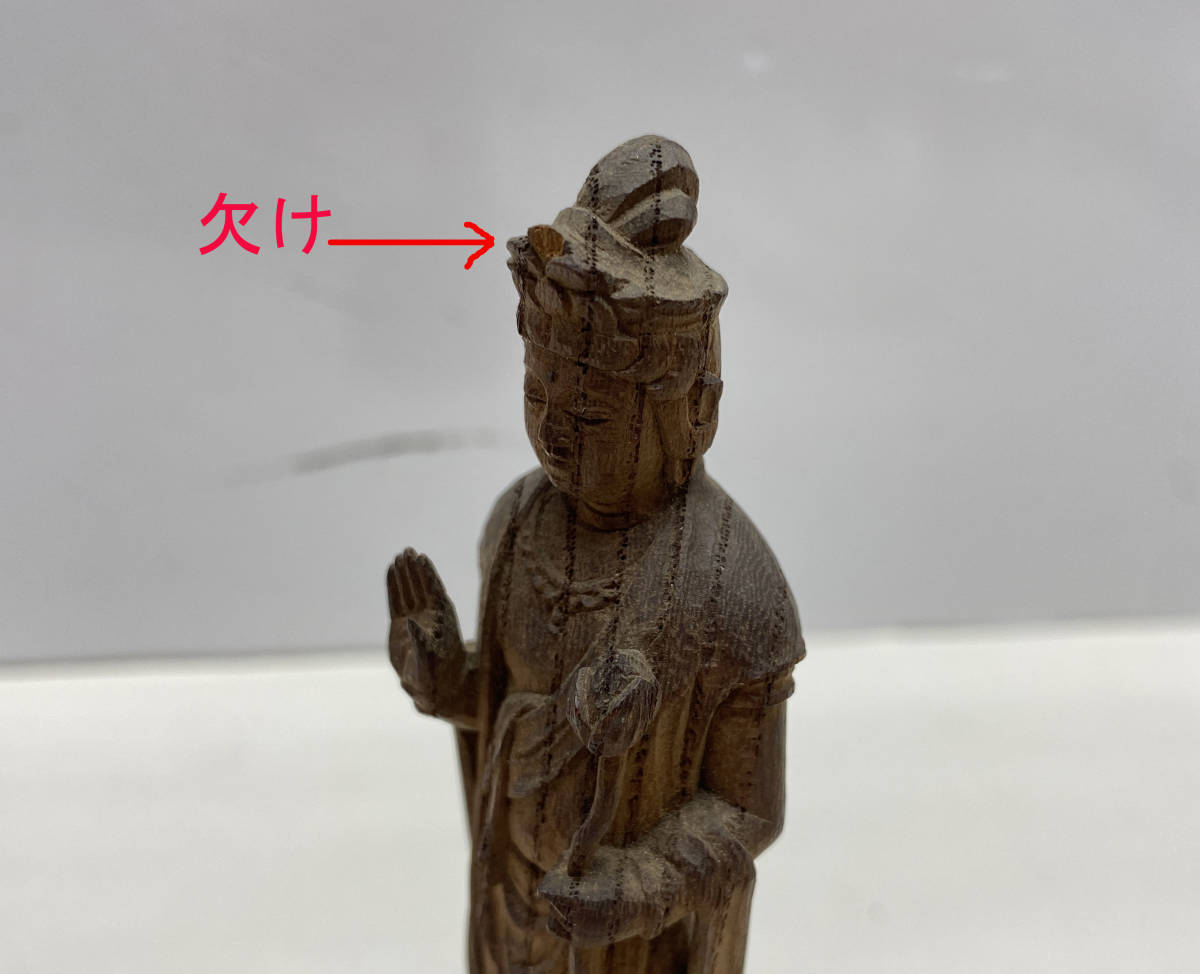 【寸法】 本体の高さ約14.5cm 厨子:高さ21cm 幅8.5×8.5cm ■商品状態■ 【三木宗策】作 ? 背面に「宗策刀?」 彫銘があります。 当方専門外ですので詳細解りません。 画像にてご判断頂きご入札ください! 経年のスレ、ヤケ、ヨゴレがあります。 頭部に一箇所欠けがございます。 ご使用のパソコンのブラウザや設定により、実物とは異なる色彩表示される場合があります。 ご入札の際にはご注意ください。 ■画像をご確認の上ノークレーム、ノーリターンにてご入札お願い致します。 |
