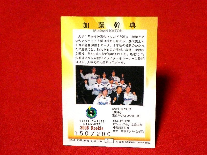 2008BBM ベースボールマガジン TradingCard 金箔押しサインカードトレカ 加藤幹典 200枚限定です。