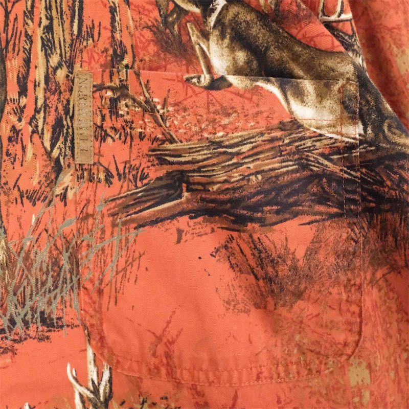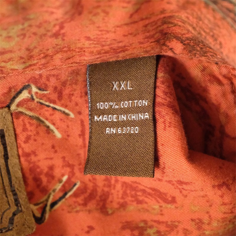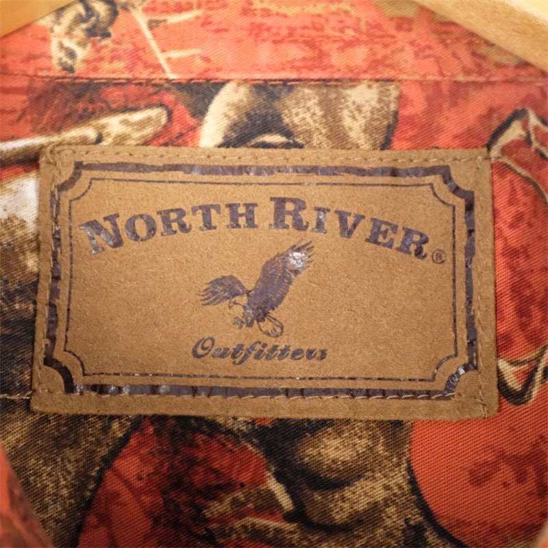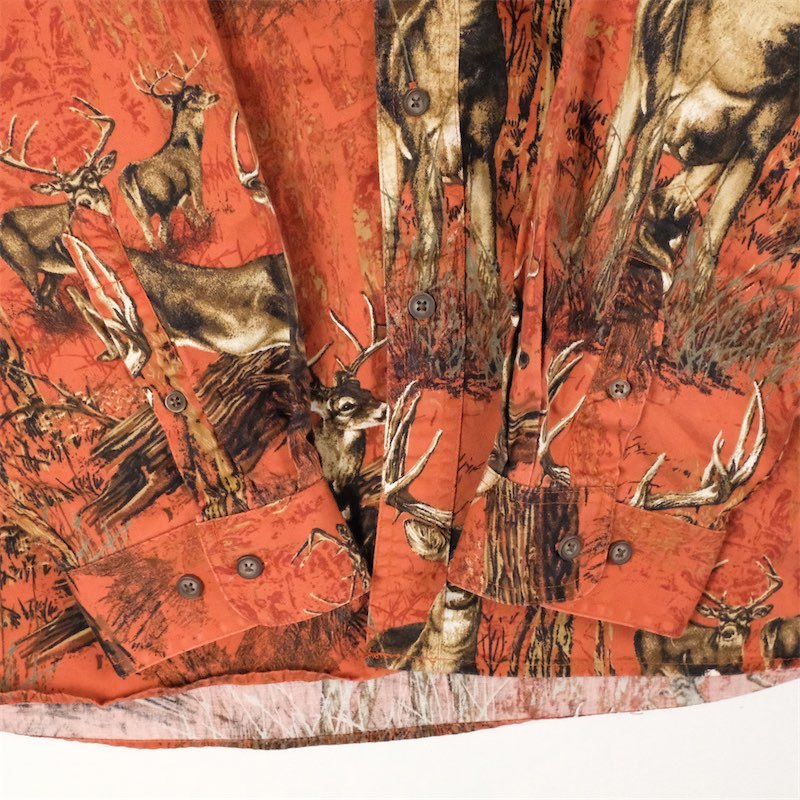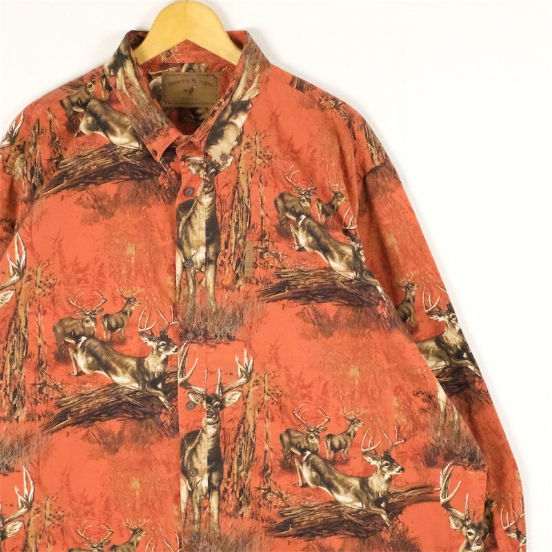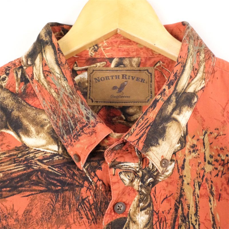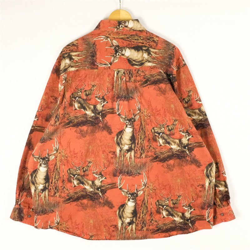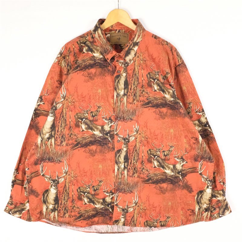 古着 大きいサイズ NORTH RIVER アニマル総柄 長袖ハンティングシャツ メンズUS-2XLサイズ レンガ系 tn-2113n