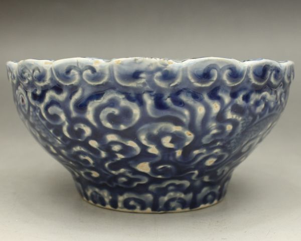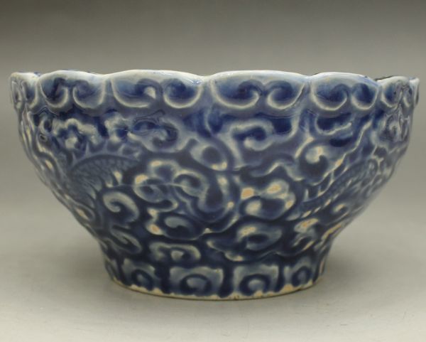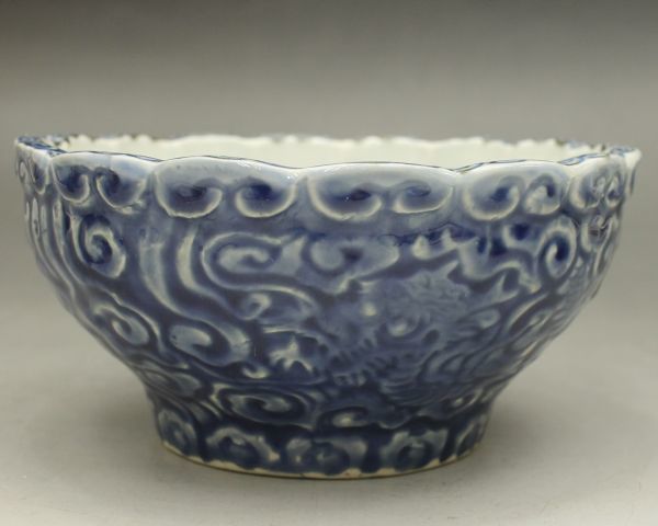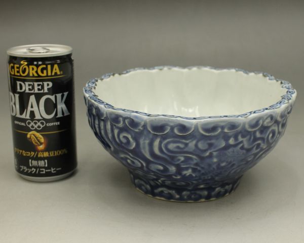 D180 染付 鉢 龍 雲 宝珠 高さ8センチ 小鉢 向付 茶道具 伊万里 有田 蔵出 古玩 珍蔵