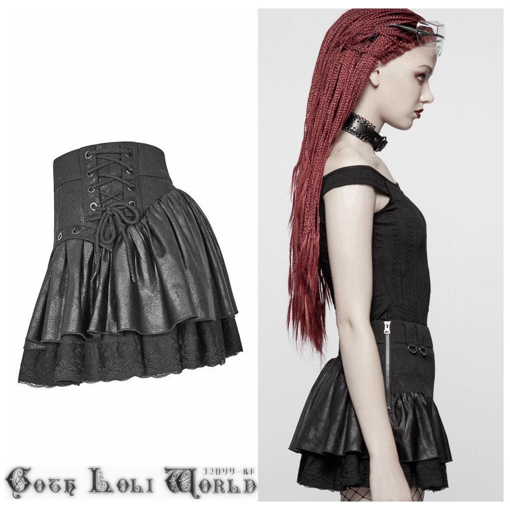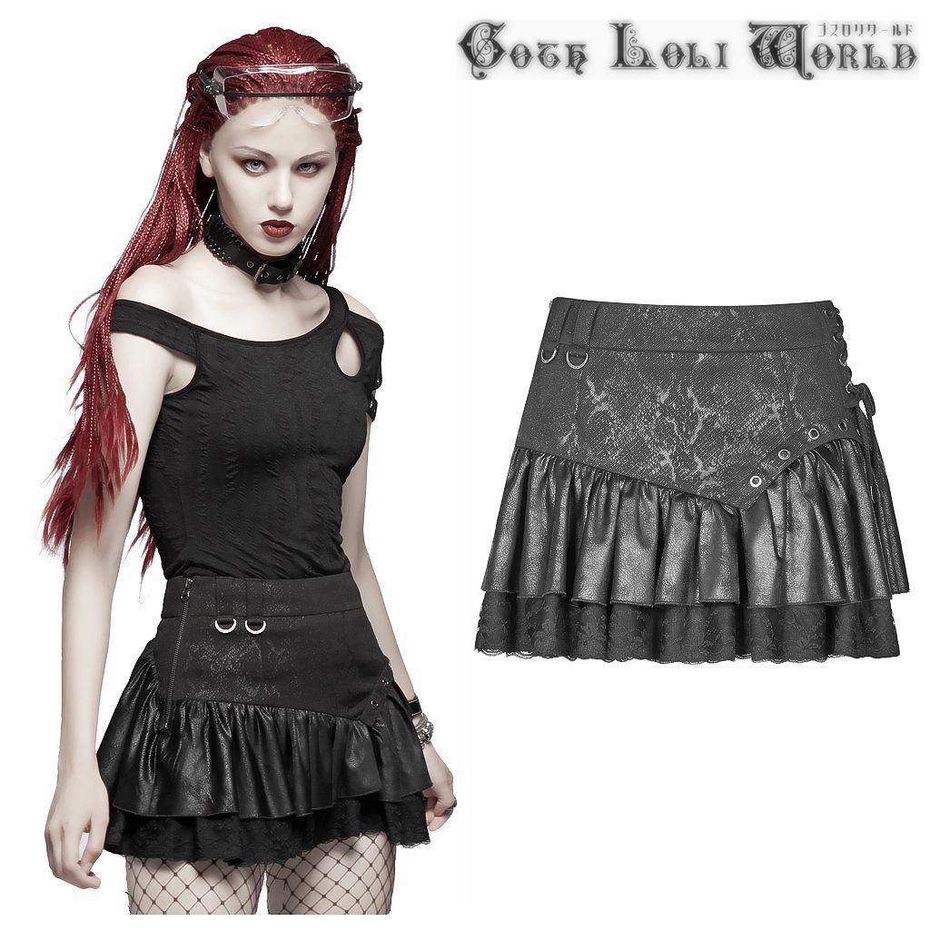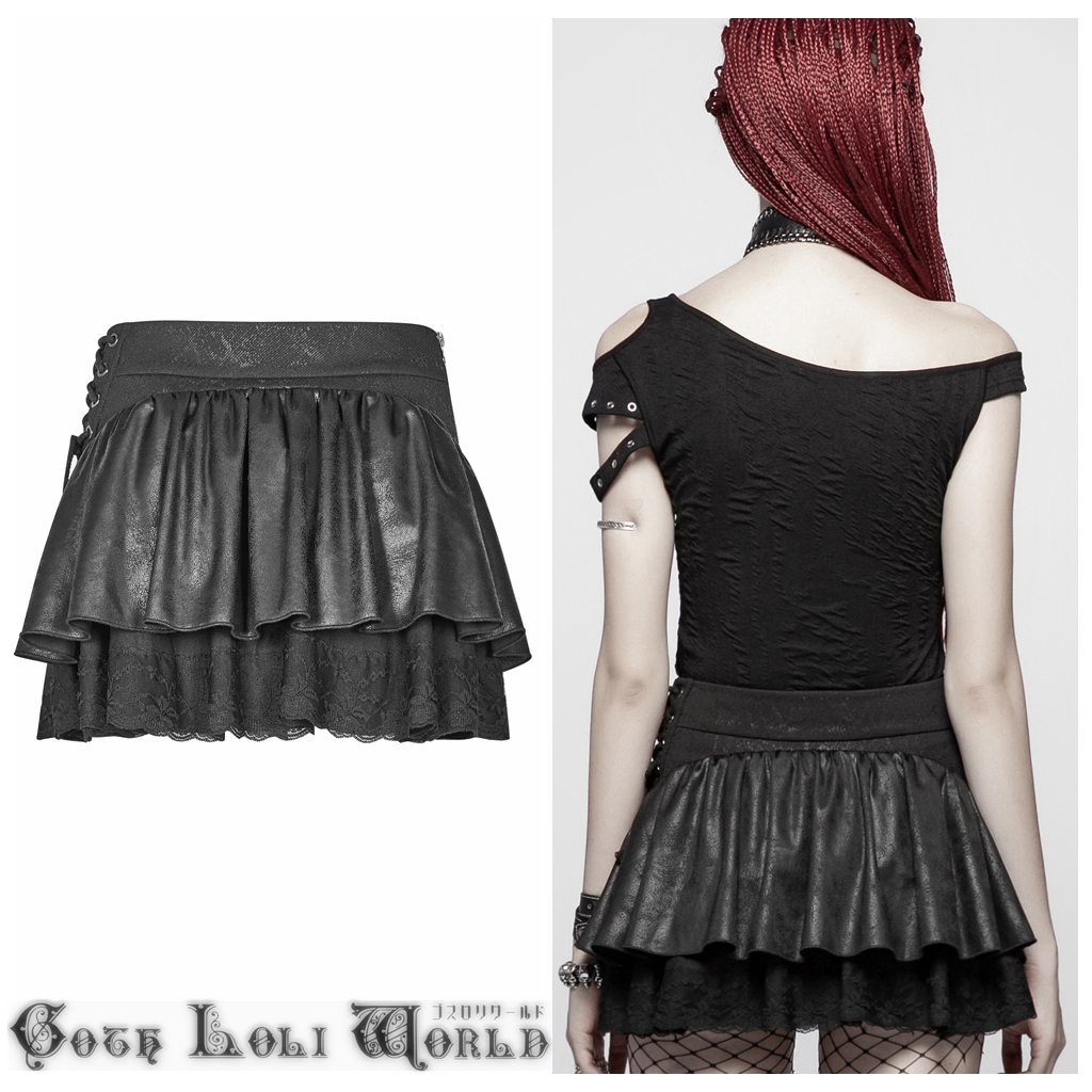 WQ-385BK-L スチームパンクフリル ミニスカート 黒色 ゴスロリワールド ゴシック パンク ロック ロリィタ ビジュアル系 V系