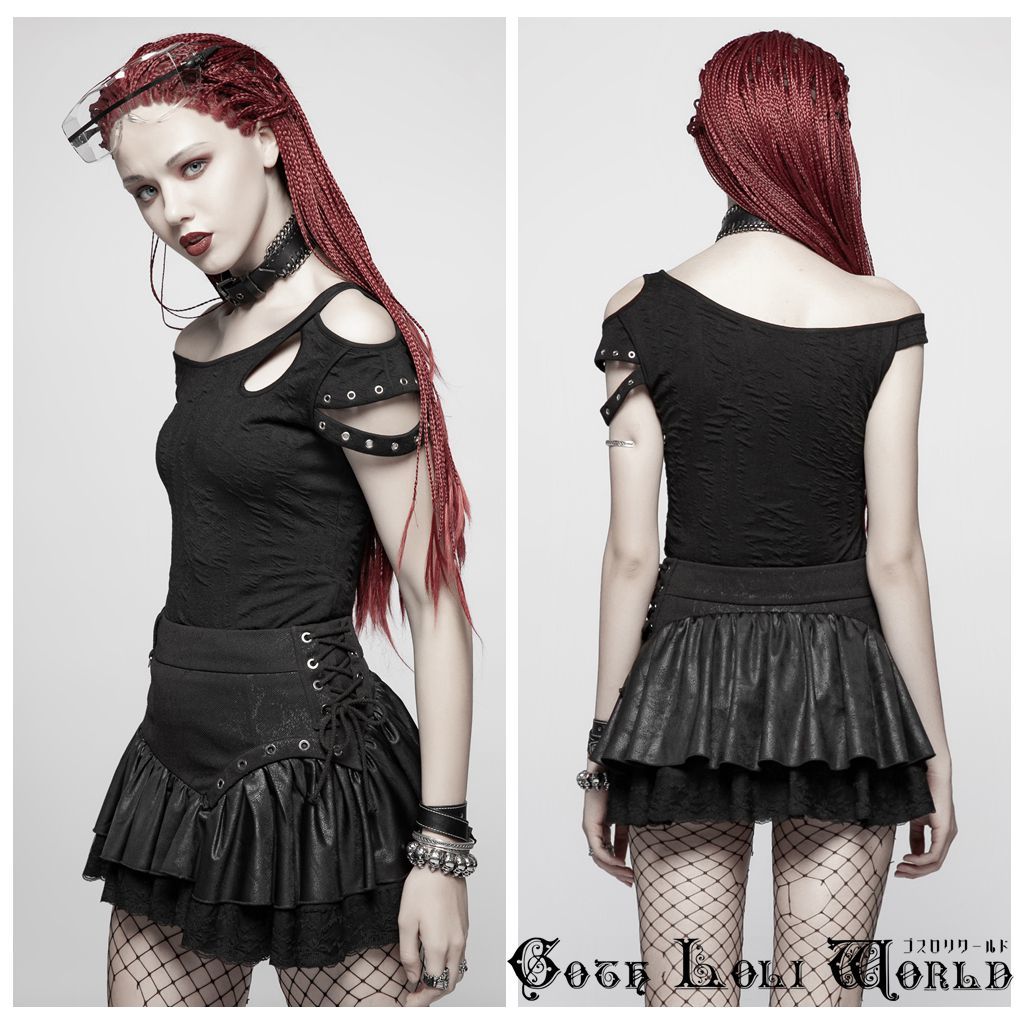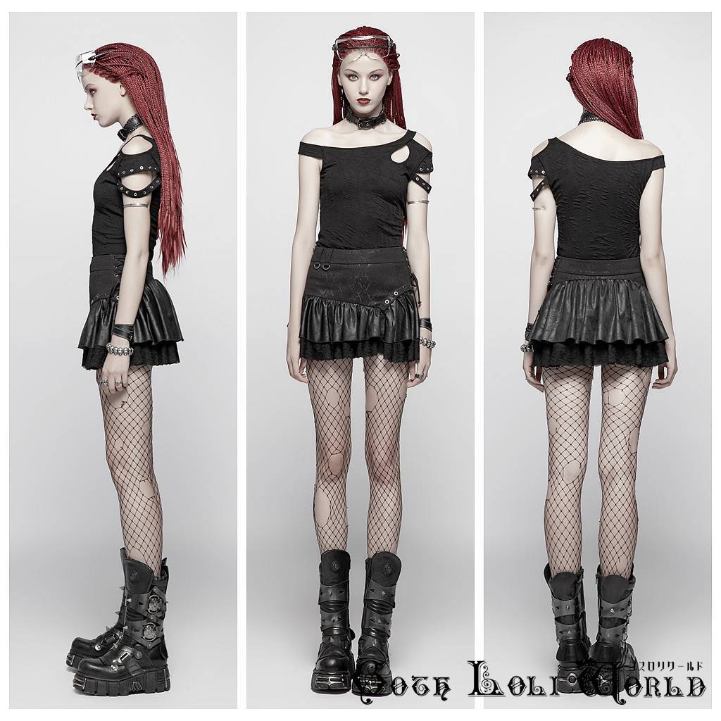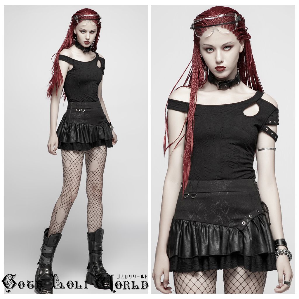 WQ-385BK-L スチームパンクフリル ミニスカート 黒色 ゴスロリワールド ゴシック パンク ロック ロリィタ ビジュアル系 V系